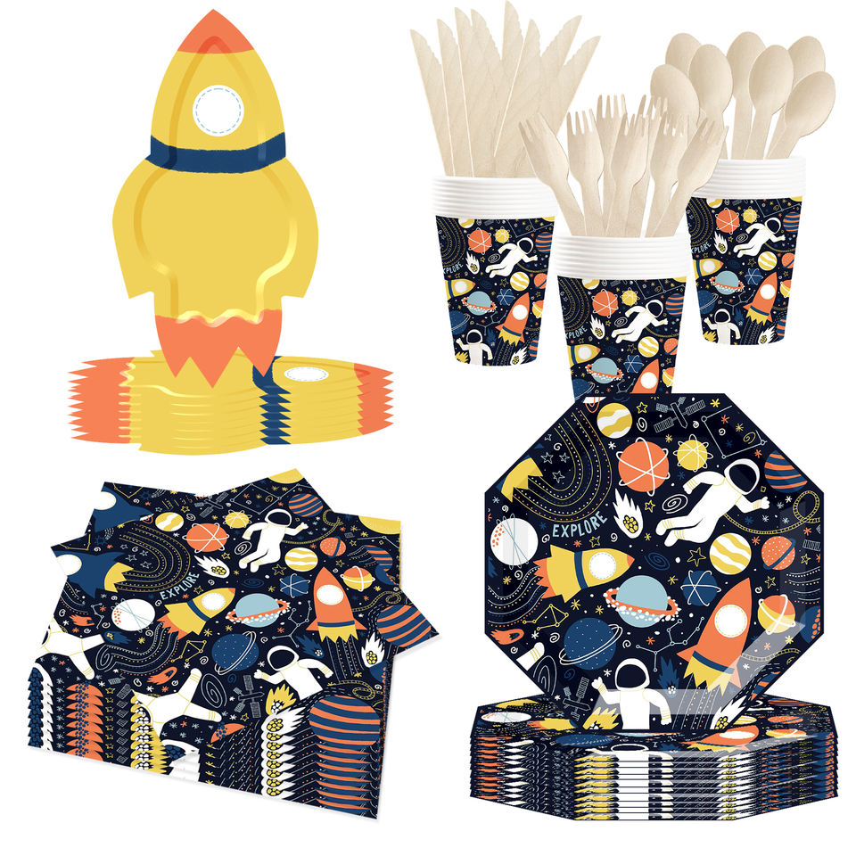 Platos Desechables con Forma de Cohete Personalizados DAMAI, Vajilla con Temática de Astronautas y Planetas para Decoración de Fiestas de Cumpleaños de Niños