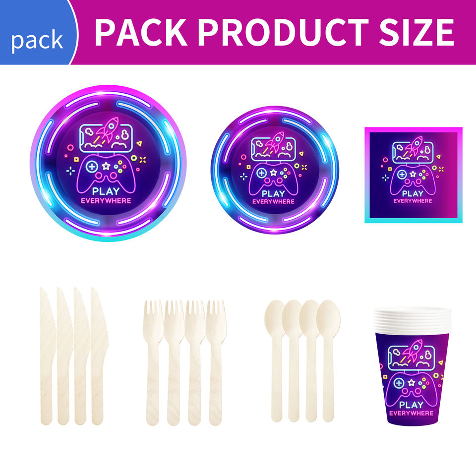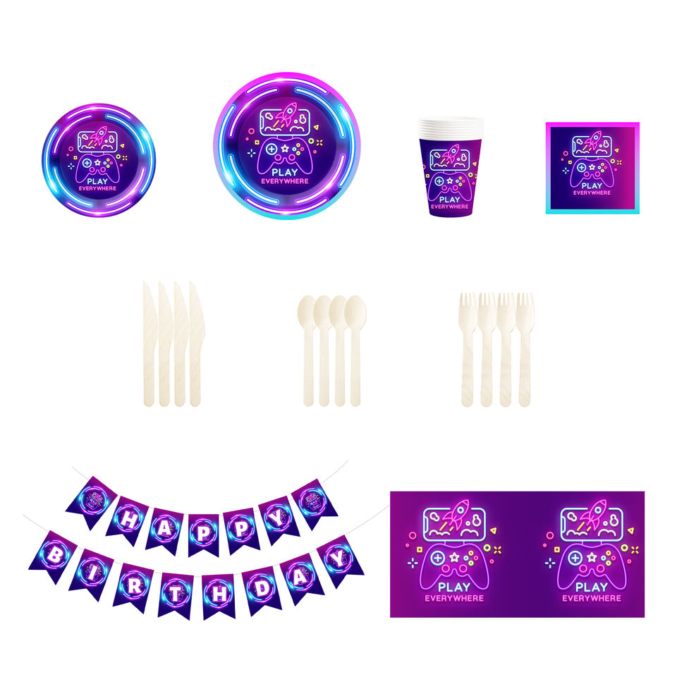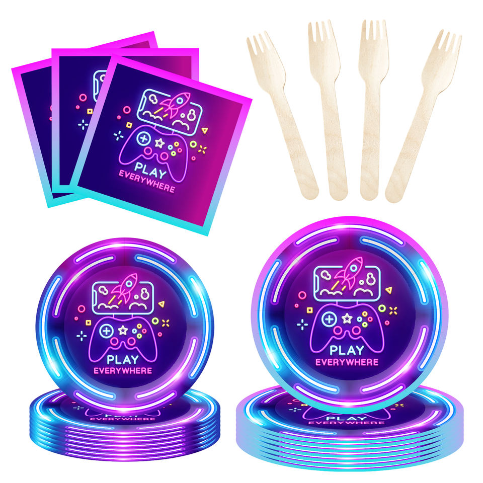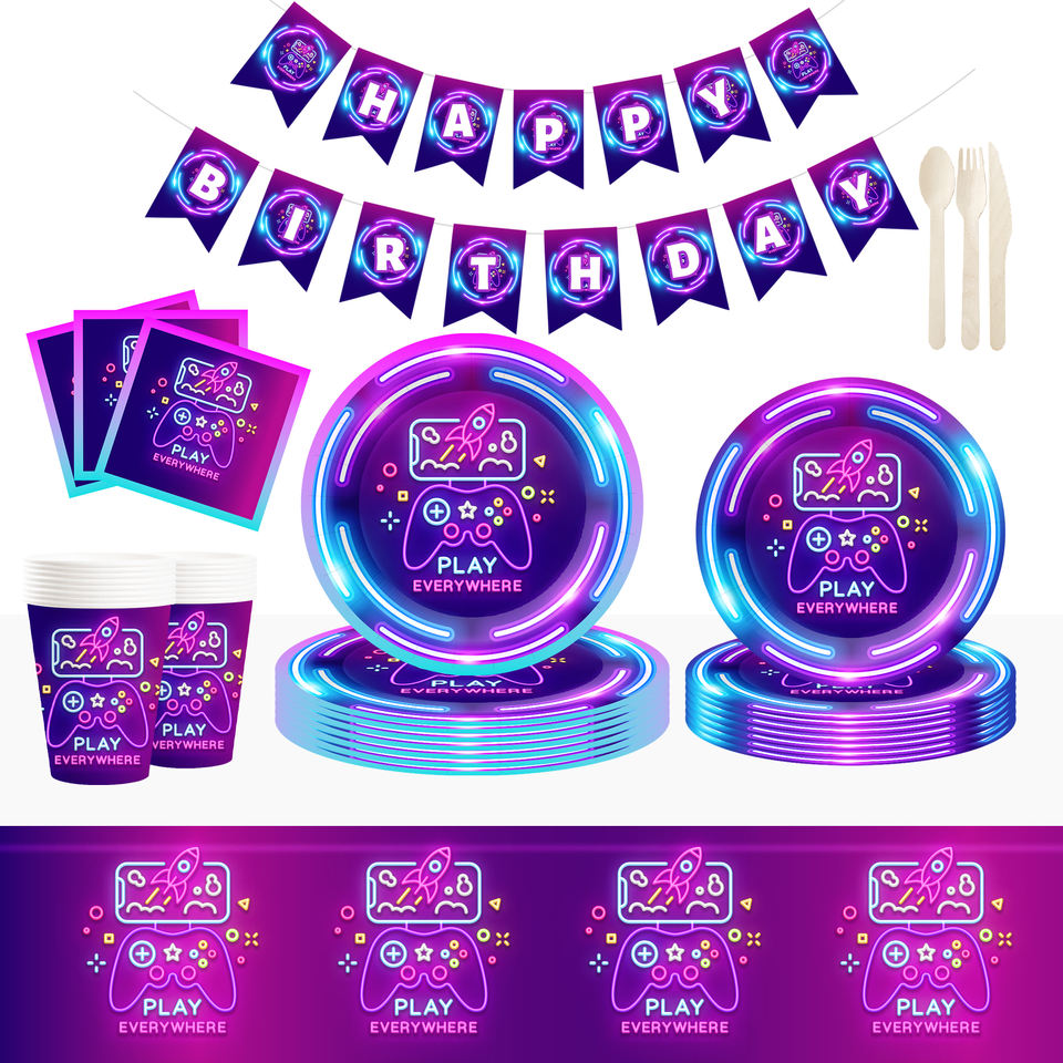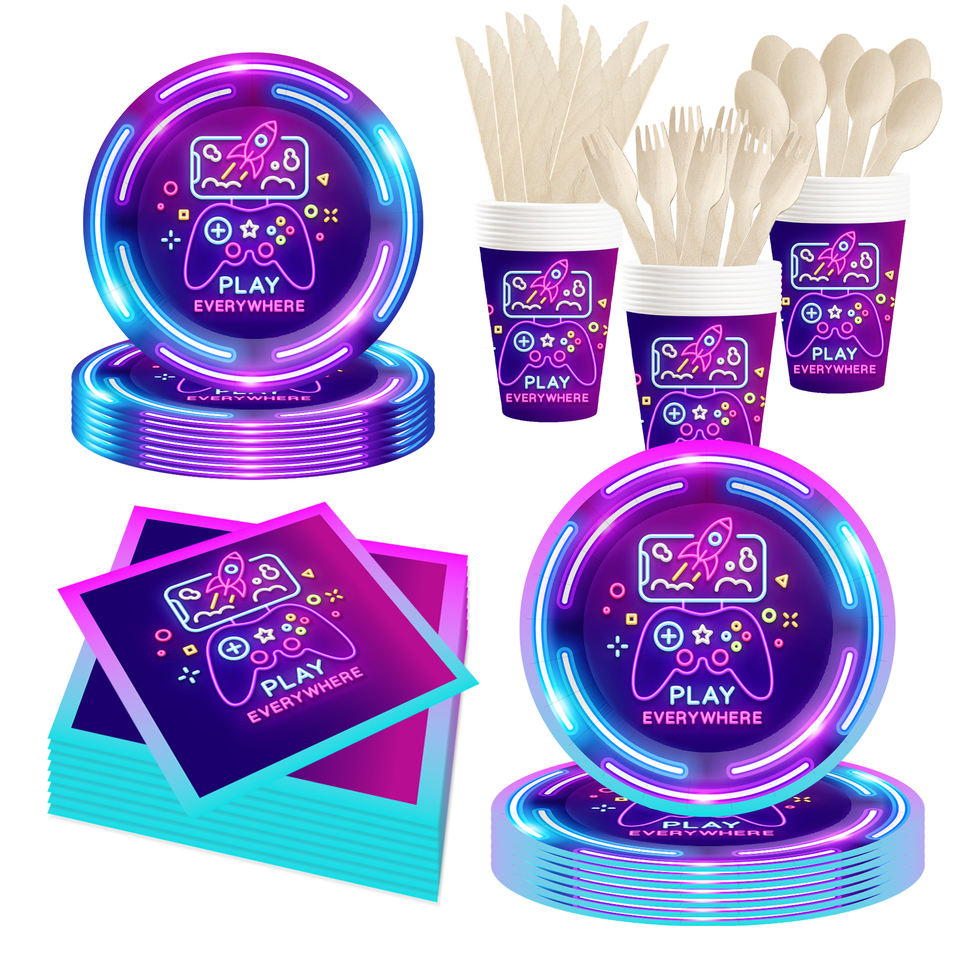 DAMAI - Juego de Vajilla Personalizado con Temática de Videojuegos para Fiestas de Cumpleaños Infantiles o Fiestas de Cumpleaños para Niños