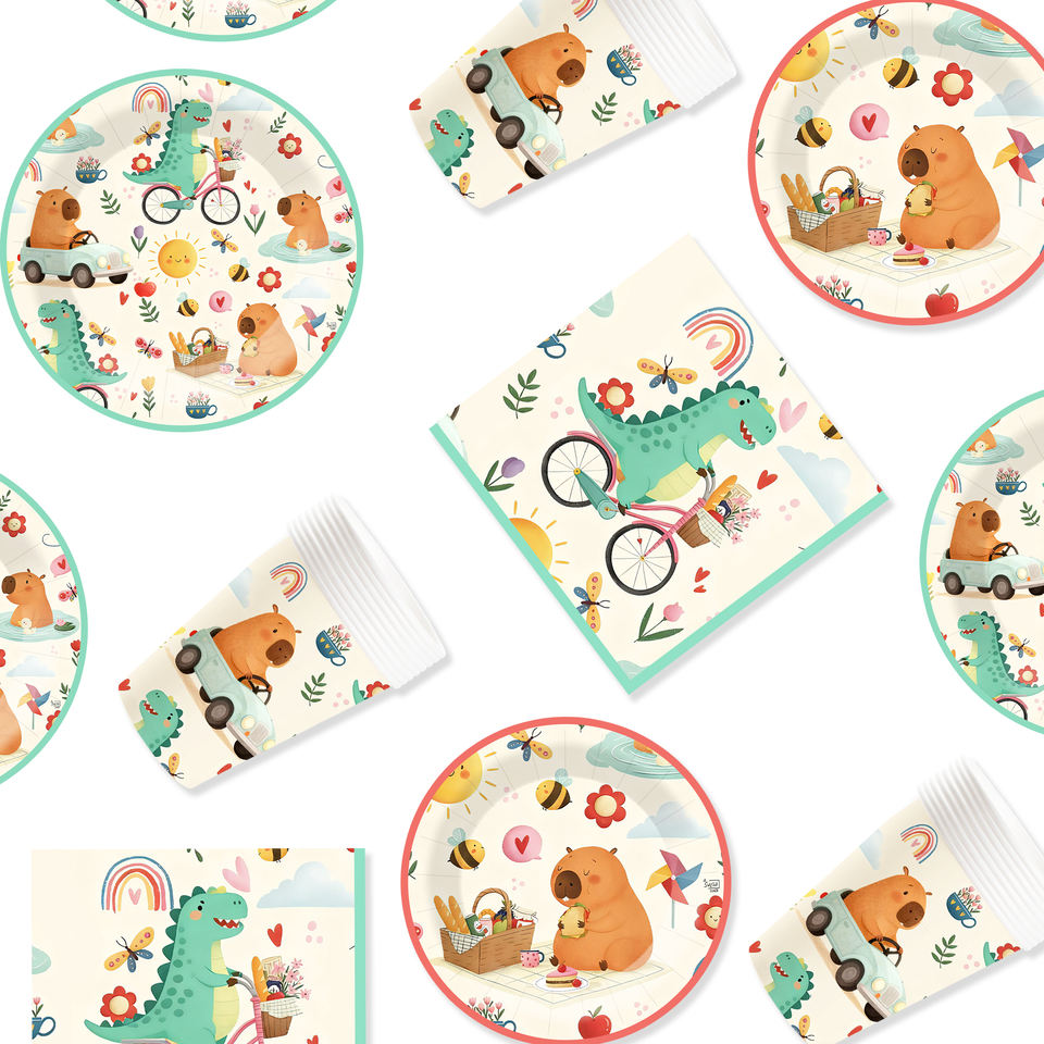 Platos de Papel de Dinosaurio DAMAI, Decoraciones Desechables para Fiesta de Dinosaurios, Suministros para Fiestas, Vajilla para Fiesta de Cumpleaños, Juego para 8 Personas