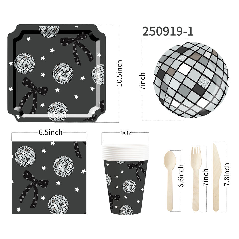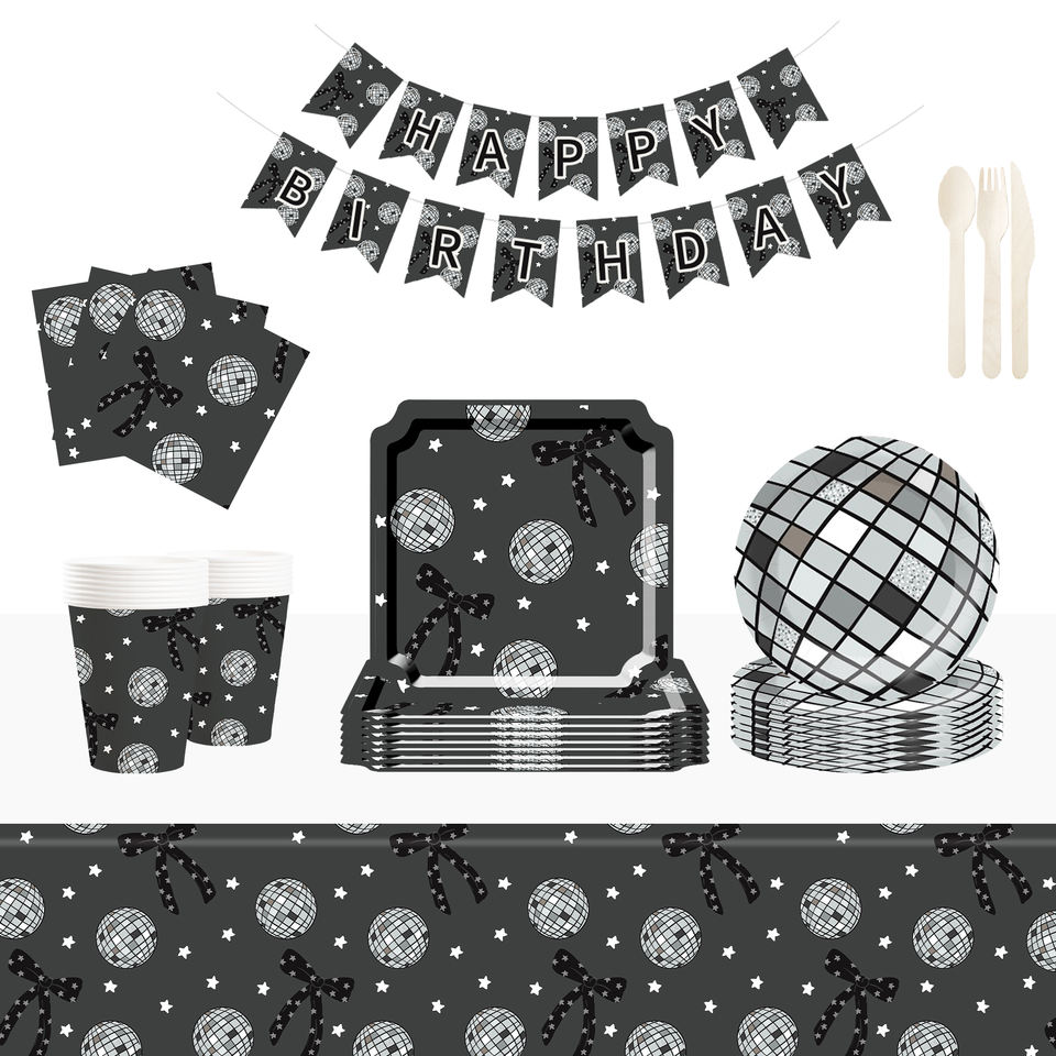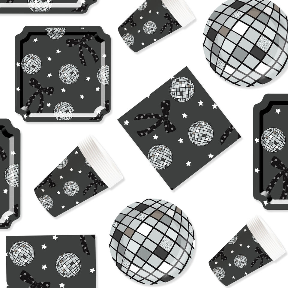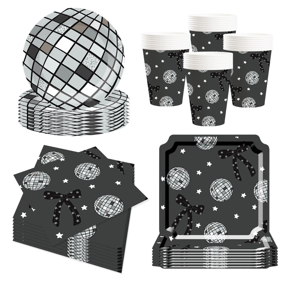 Juego de Vajilla para Fiesta Temática de Discoteca DAMAI con Decoraciones de Lazos, Incluye Platos de Papel, Vasos y Servilletas para Fiesta de Cumpleaños para 8 Personas
