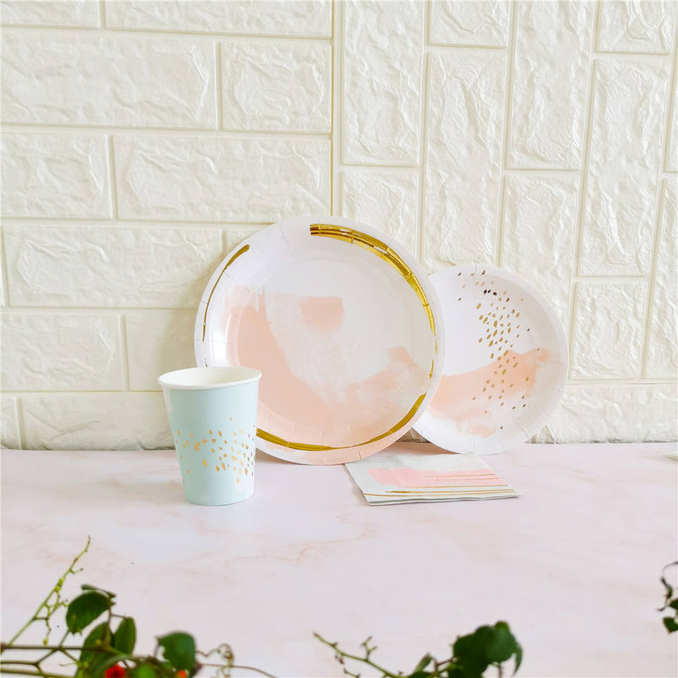 Platos y Vasos Desechables de Papel Antigrasa DAMAI para Fiestas de Cumpleaños, Picnics al Aire Libre, Barbacoas, Juegos de Vajilla