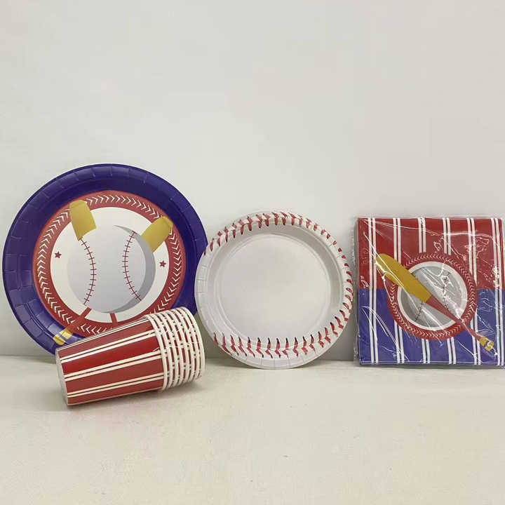 Platos de Papel Desechables DAMAI con Temática de Eventos, Platos de Papel con Temática Deportiva, Platos de Papel con Temática de Béisbol