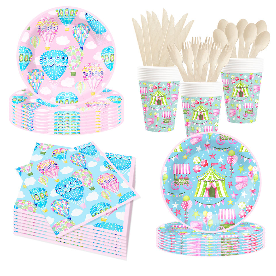 Juego de Vajilla Desechable DAMAI con Temática de Circo, Decoración para Fiestas, Juego de Vajilla Desechable con Plato de Papel y Servilleta de Papel