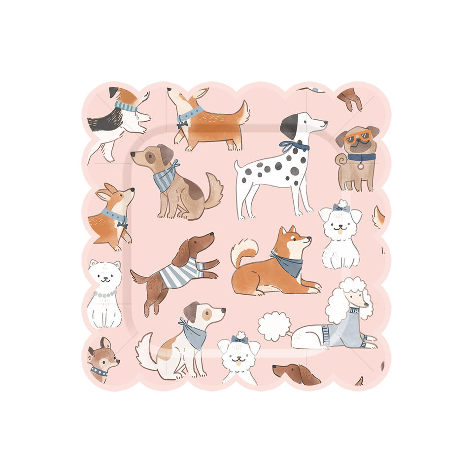 Plato de papel con temática de perros
