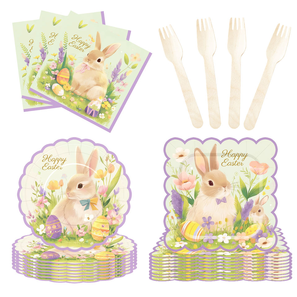 DAMAI - Juego de Decoración para Fiesta de Pascua, Platos de Papel con Diseño de Conejo de Pascua, Mantel, Vajilla Desechable para Fiesta