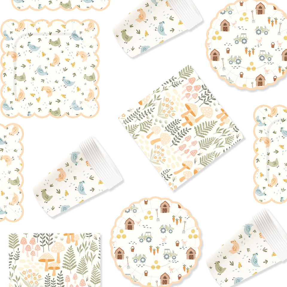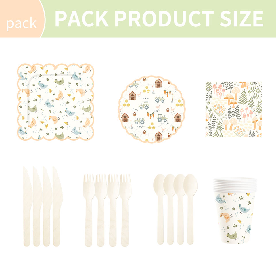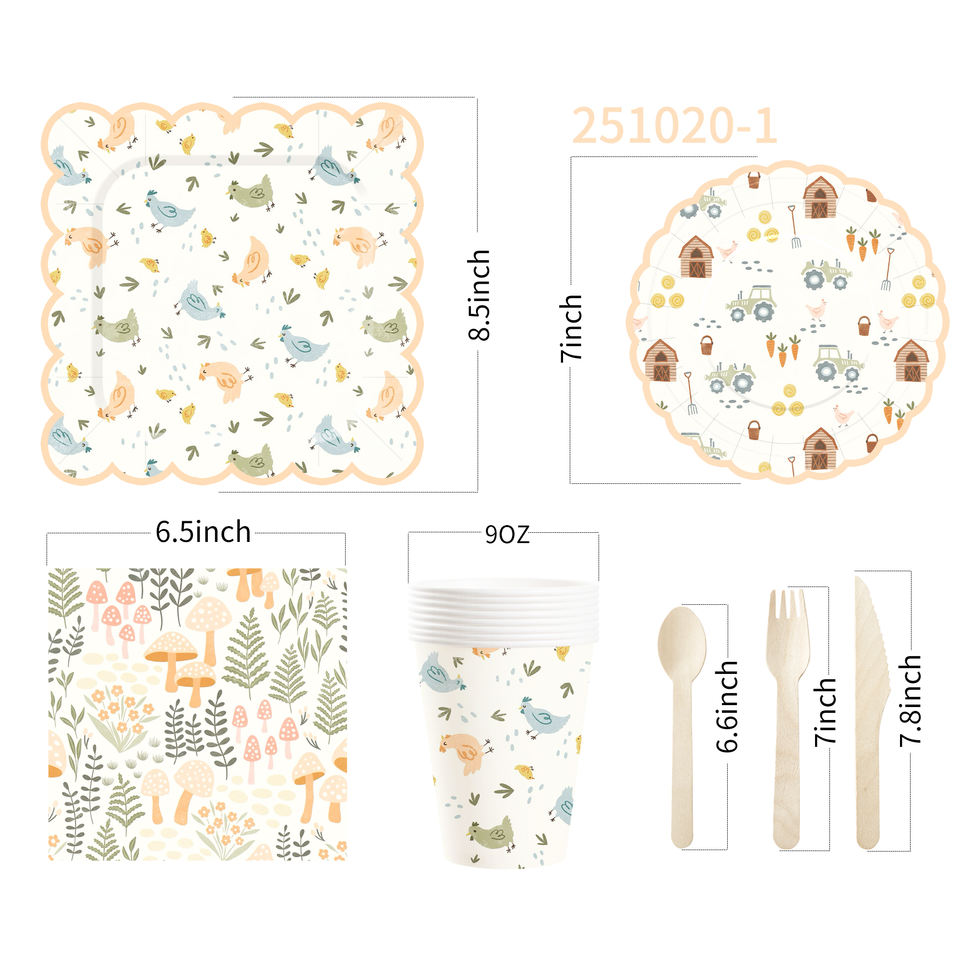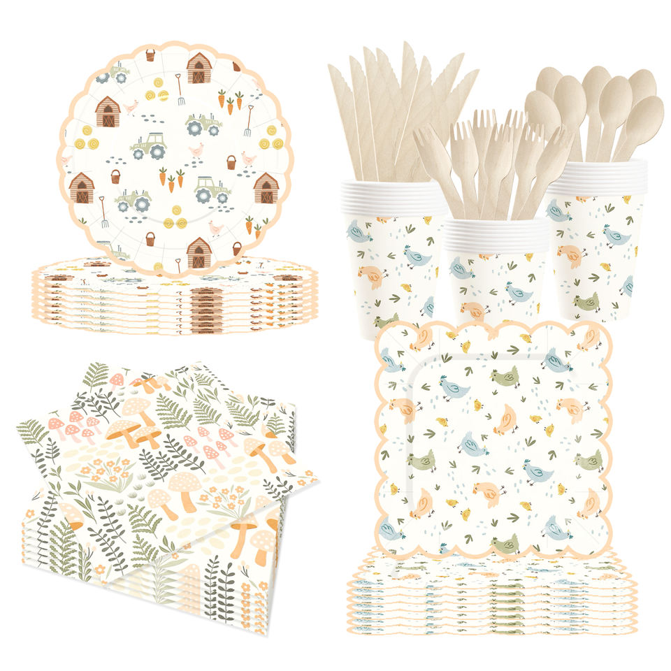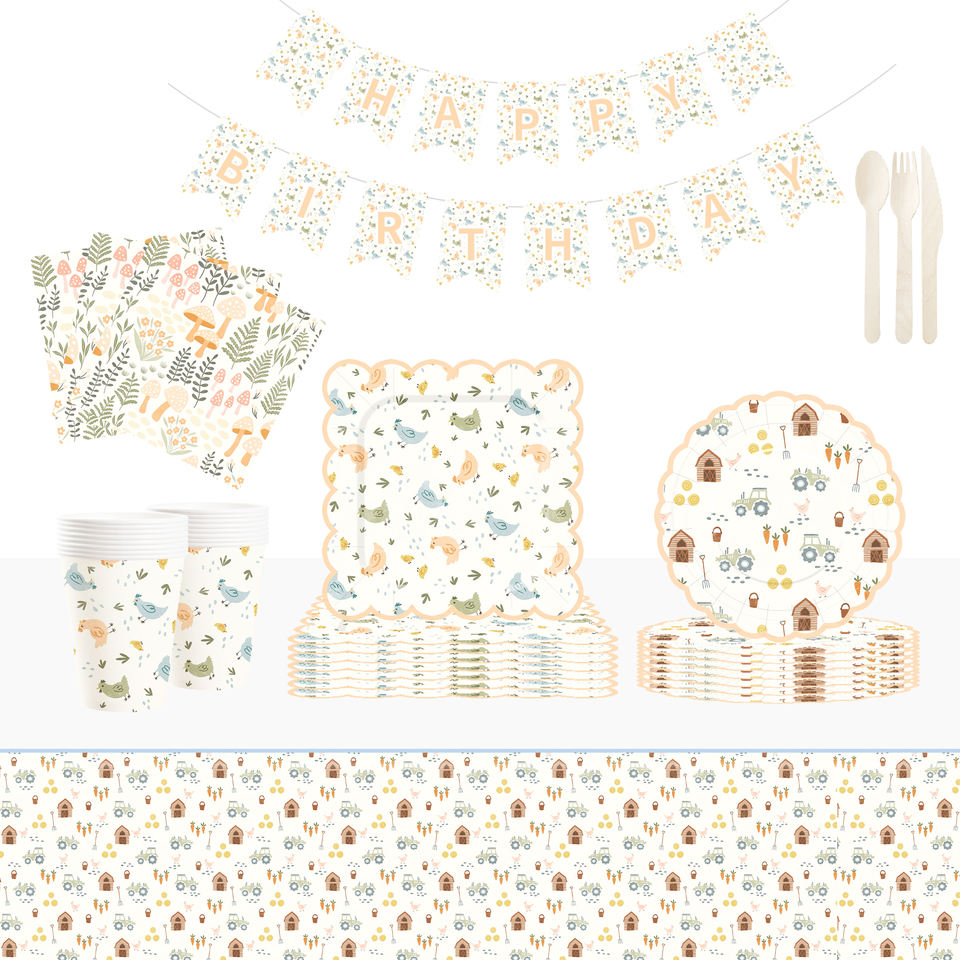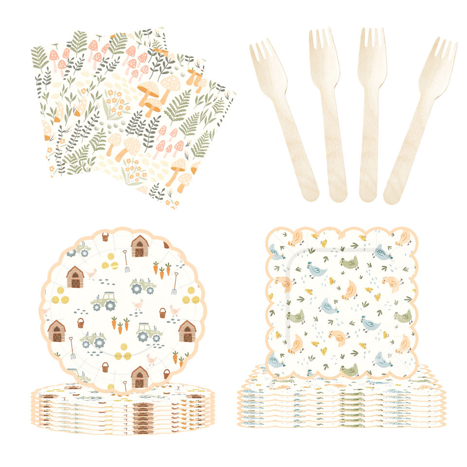 Juego de Vajilla Desechable con Diseño de Granja DAMAI, Platos, Vasos y Servilletas de Papel para Postre y Cena, con Animales y Autos para Fiestas Infantiles