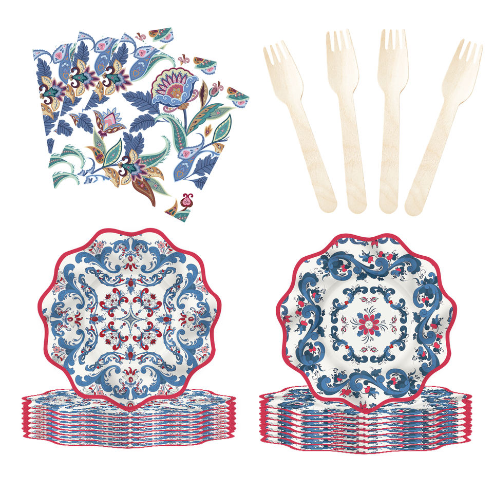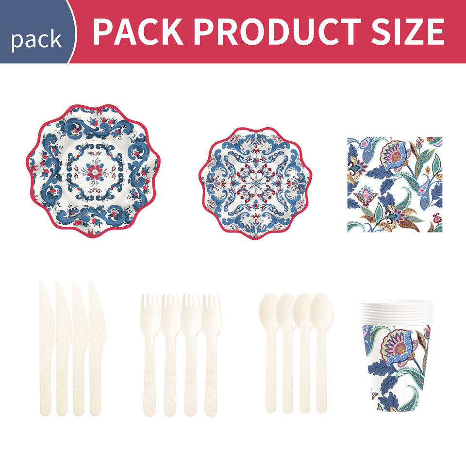 DAMAI - Juego de Platos, Vasos y Servilletas Desechables de Papel con Diseño Floral Estilo Chino Retro para Fiestas, para 8 Personas