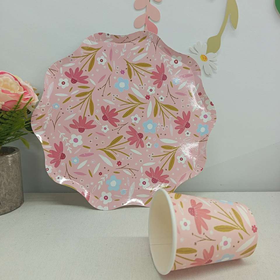 DAMAI - Juego de Vajilla Desechable de Papel con Diseño de Flores, Platos y Vasos para Fiestas, Suministros para Fiestas de Té y Bodas