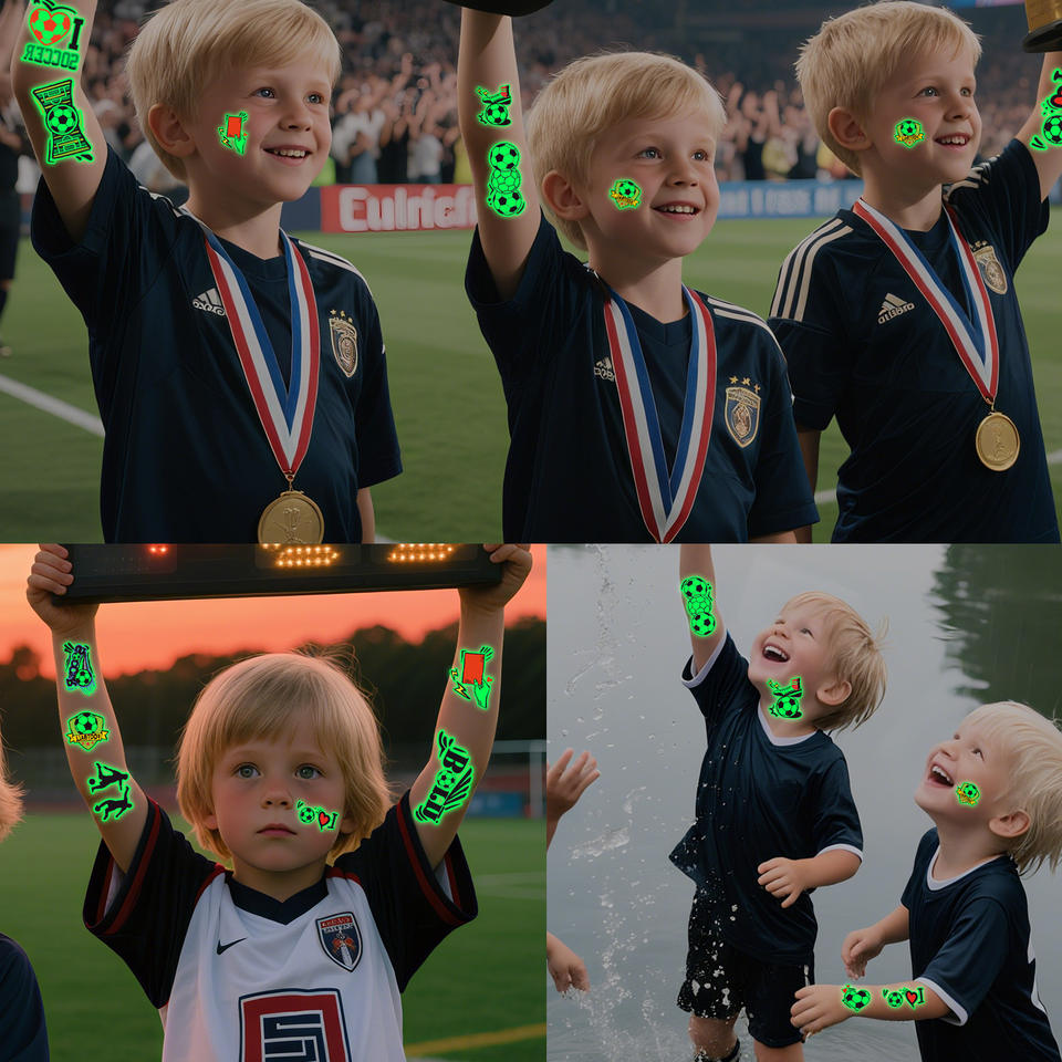 Tatuajes Temporales Fluorescentes de Fútbol DAMAI, Material de Papel Impermeable, Recuerdos para Fiestas Deportivas, Decoraciones para Clubes