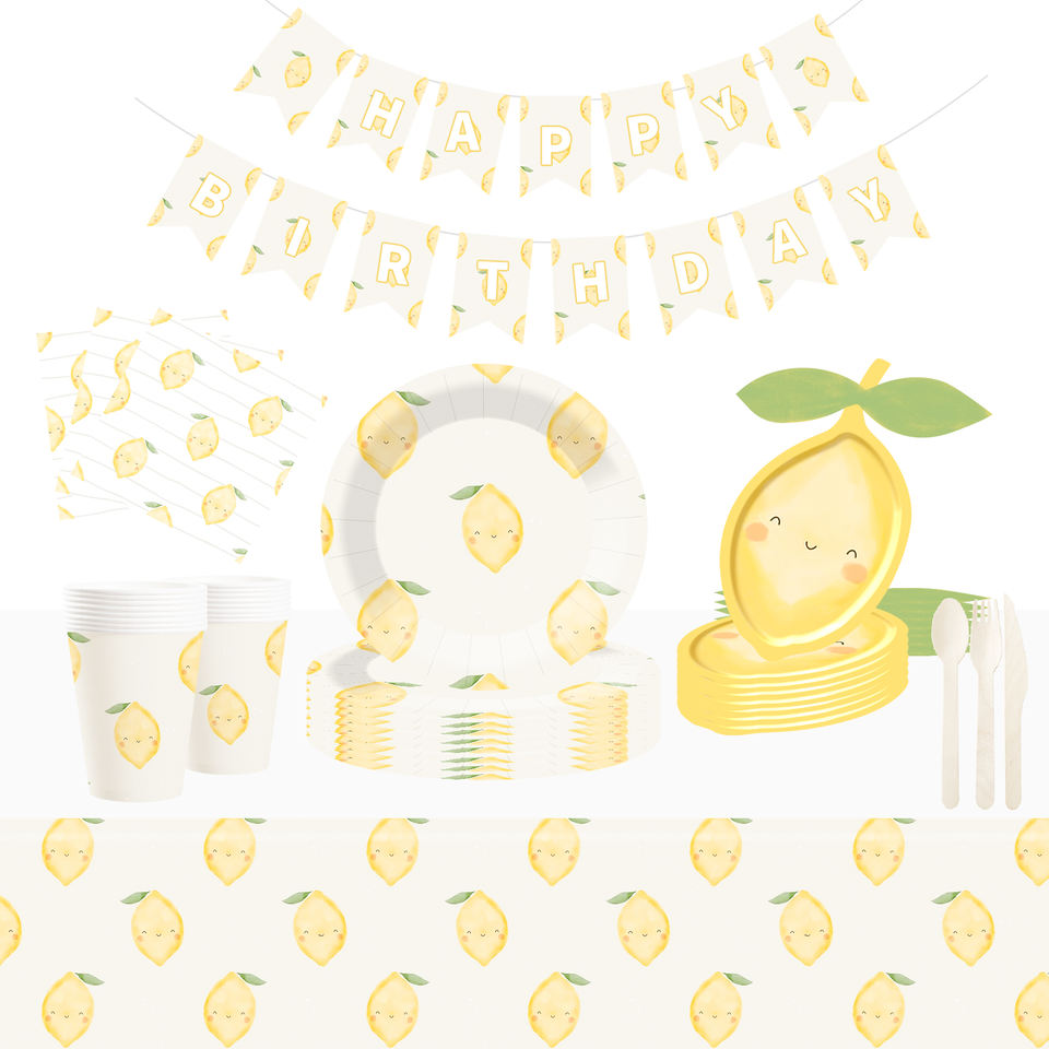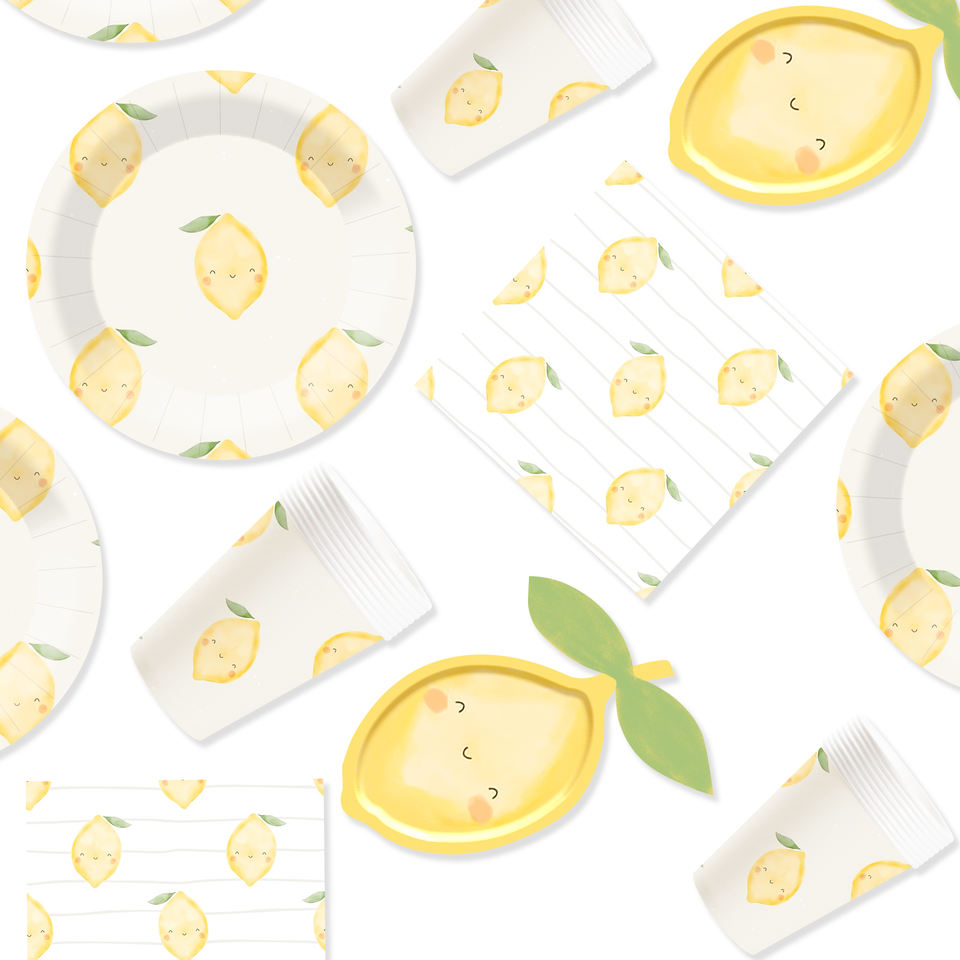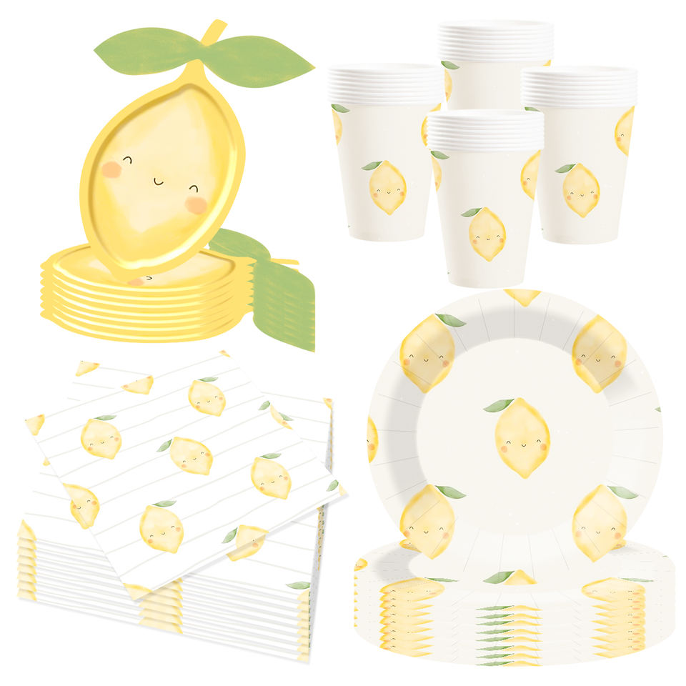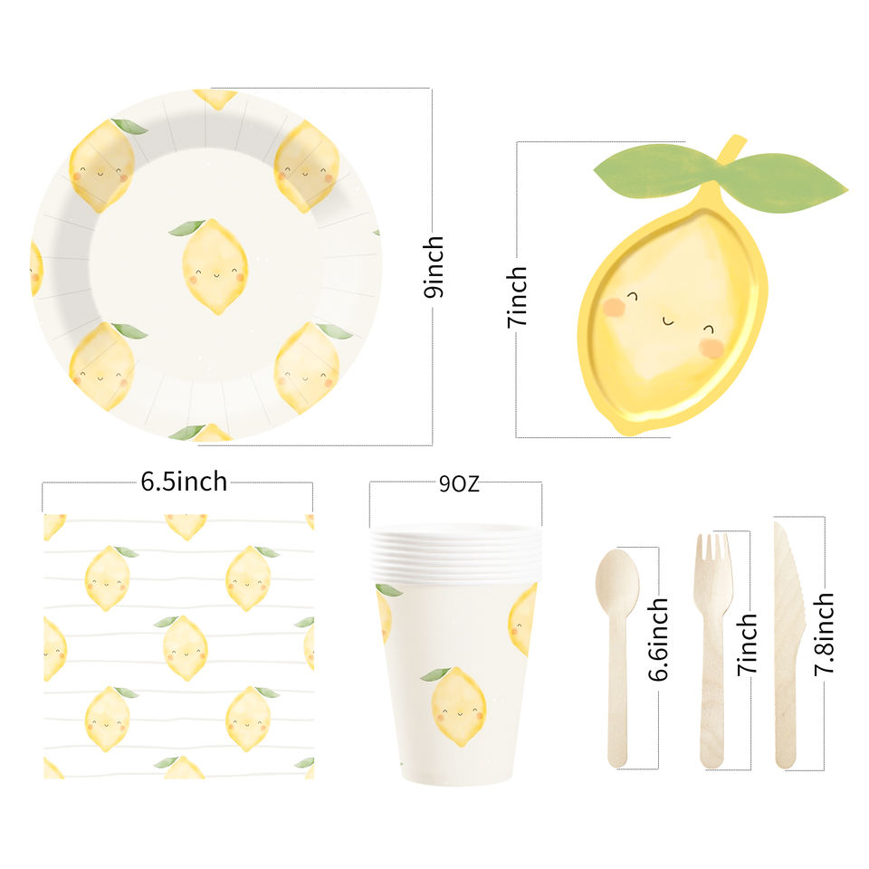 Juego de Vajilla Desechable DAMAI con Diseño de Limón Fresco, Platos y Vasos de Papel para Postre, Juego de Vajilla para Fiestas
