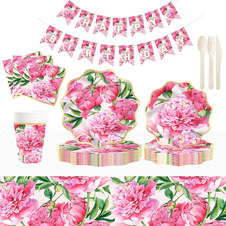 Juego de Vajilla Desechable Estilo Fiesta en el Jardín DAMAI, Platos, Vasos y Servilletas de Papel para Decoración de Fiestas de Cumpleaños de Niñas