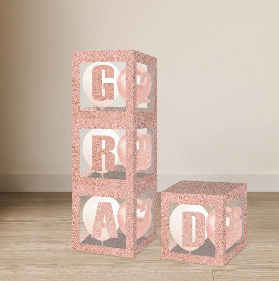 Decoraciones para Fiesta de Graduación DAMAI, Caja de Papel Transparente para Regalos de Fiesta Infantil, Artículos de Cumpleaños para Caja de Globos Color Oro Rosa