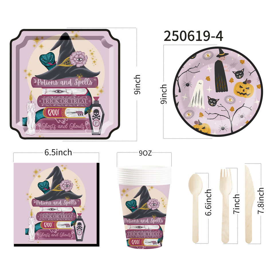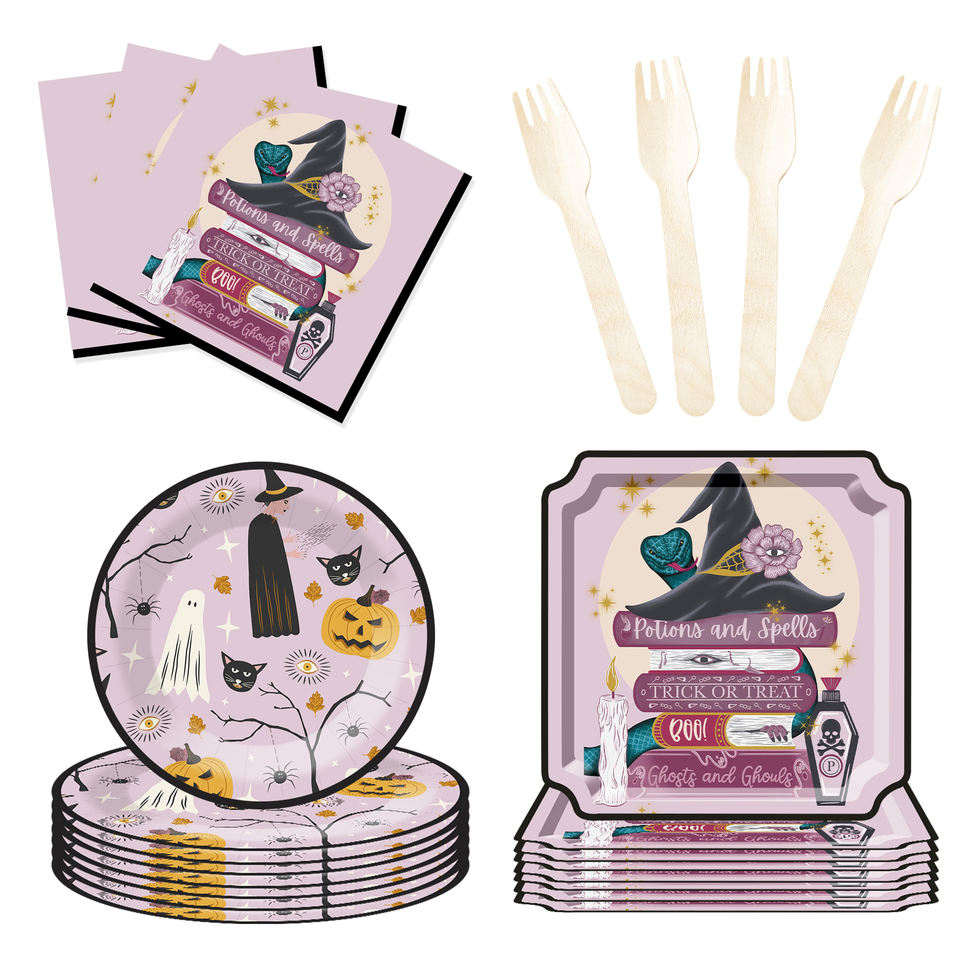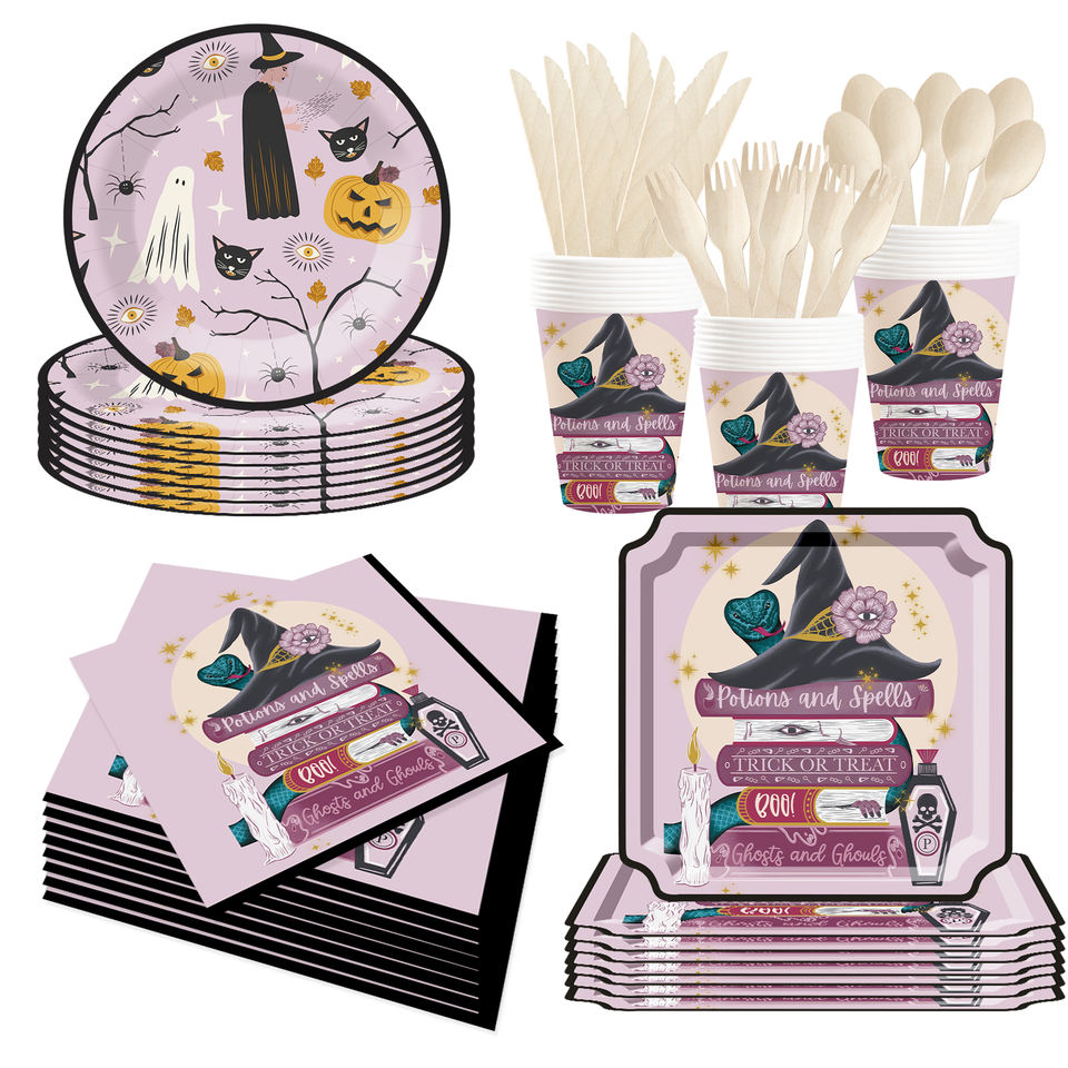 DAMAI Halloween Party Disposable Paper Plates Customized Pumpkin Witch Hat Printing Paper Dessert Plates Tableware Sets