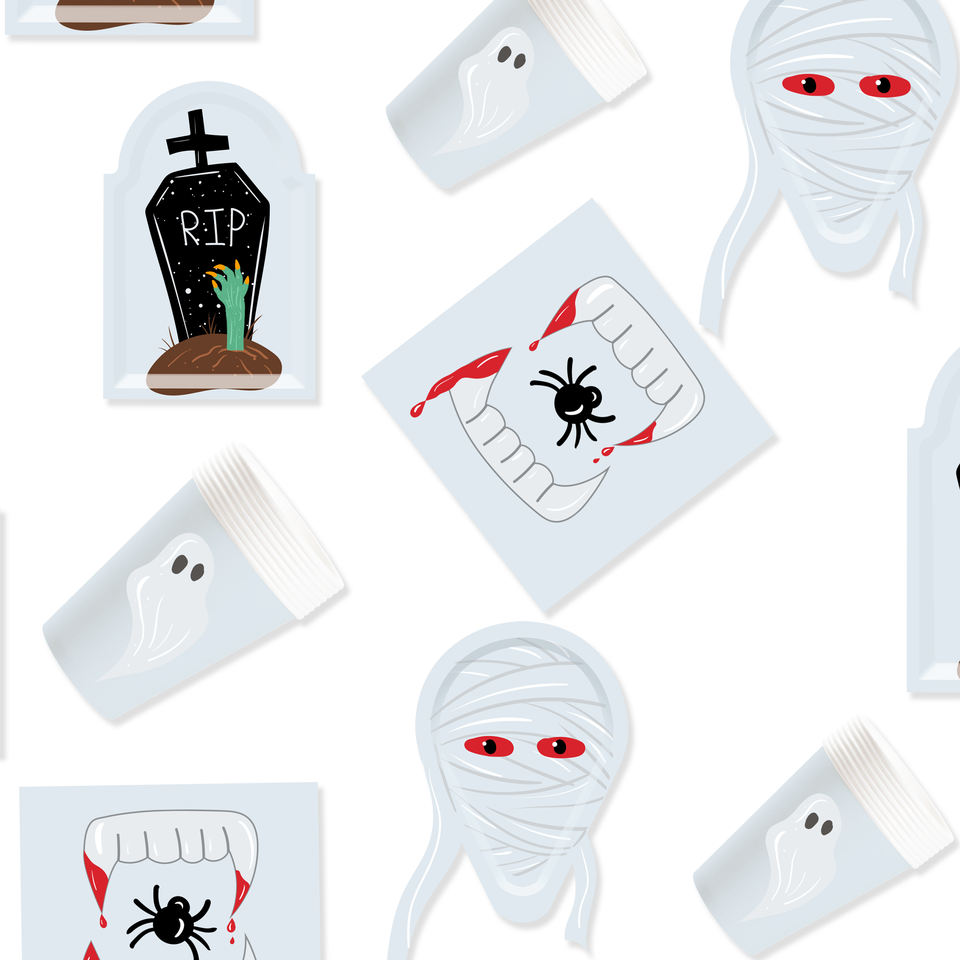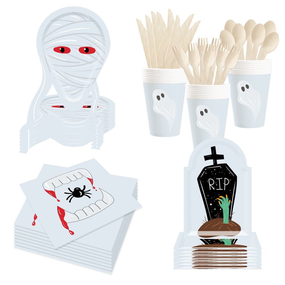 Juego de Vajilla para Fiesta de Halloween DAMAI, Platos de Papel con Elementos de Lápidas y Cruces, Molde de Fantasma para Suministros de Halloween, Sirve para 8 Personas