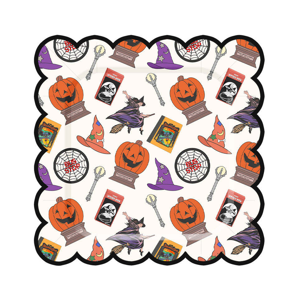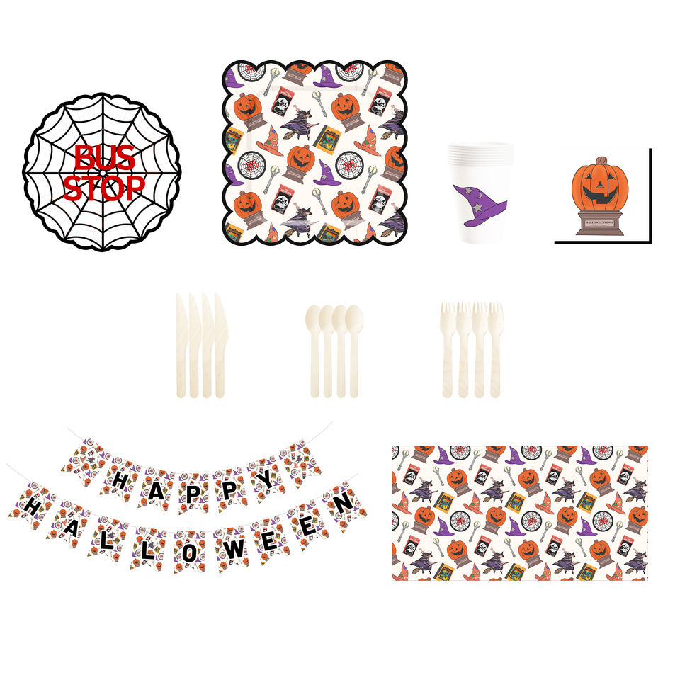 DAMAI Halloween Spider Web Paper Plates Set Halloween Pumpkin Theme Party Decorations Paper Plates Cups for Halloween Party