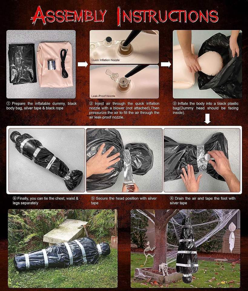 Decoración de Halloween DAMAI: Cadáver Colgante, Víctima, Decoración para Casa Encantada, Decoración de Halloween Espeluznante, Inflables de Exterior para Jardín