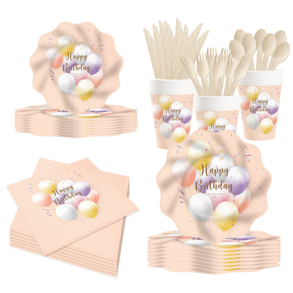 Vajilla Temática de Cumpleaños DAMAI para Niños, Decoraciones para Fiestas de Cumpleaños, Platos de Papel con Diseño de Globos, Servilletas y Vasos para 8 Personas