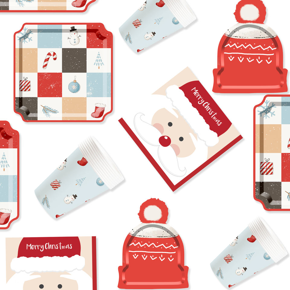Juego de Vajilla Desechable DAMAI con Diseño Navideño de Santa Claus, Platos, Vasos y Servilletas de Papel para Decoración Navideña y Fiestas