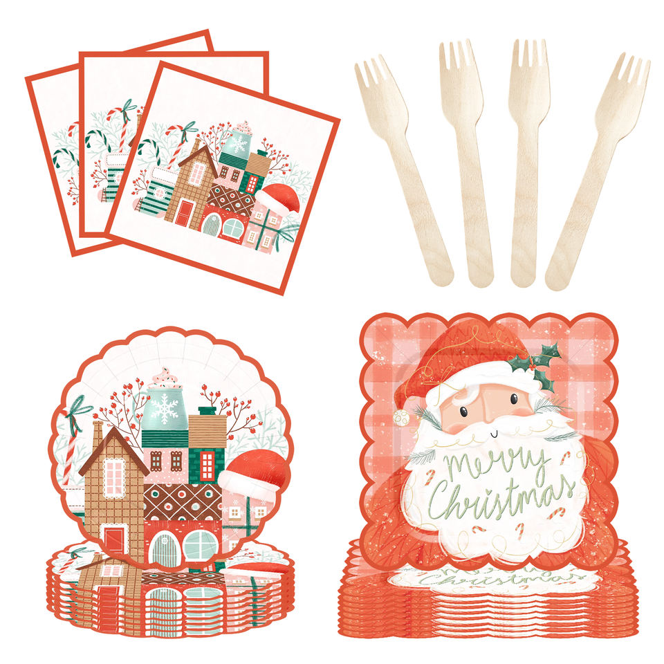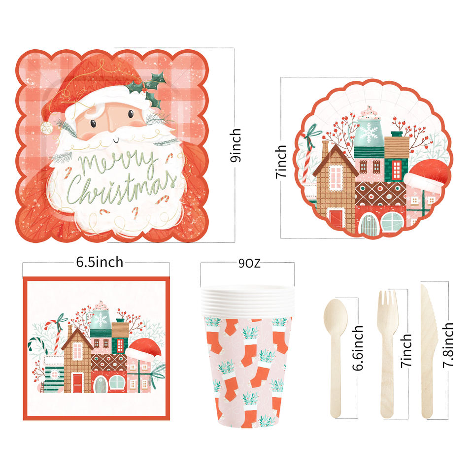 Juego de Vajilla Desechable DAMAI con Diseño Navideño de Santa Claus, Platos, Vasos y Servilletas de Papel para Decoración Navideña y Fiestas