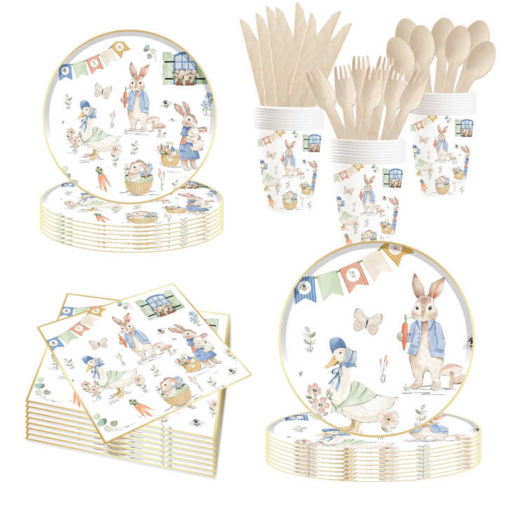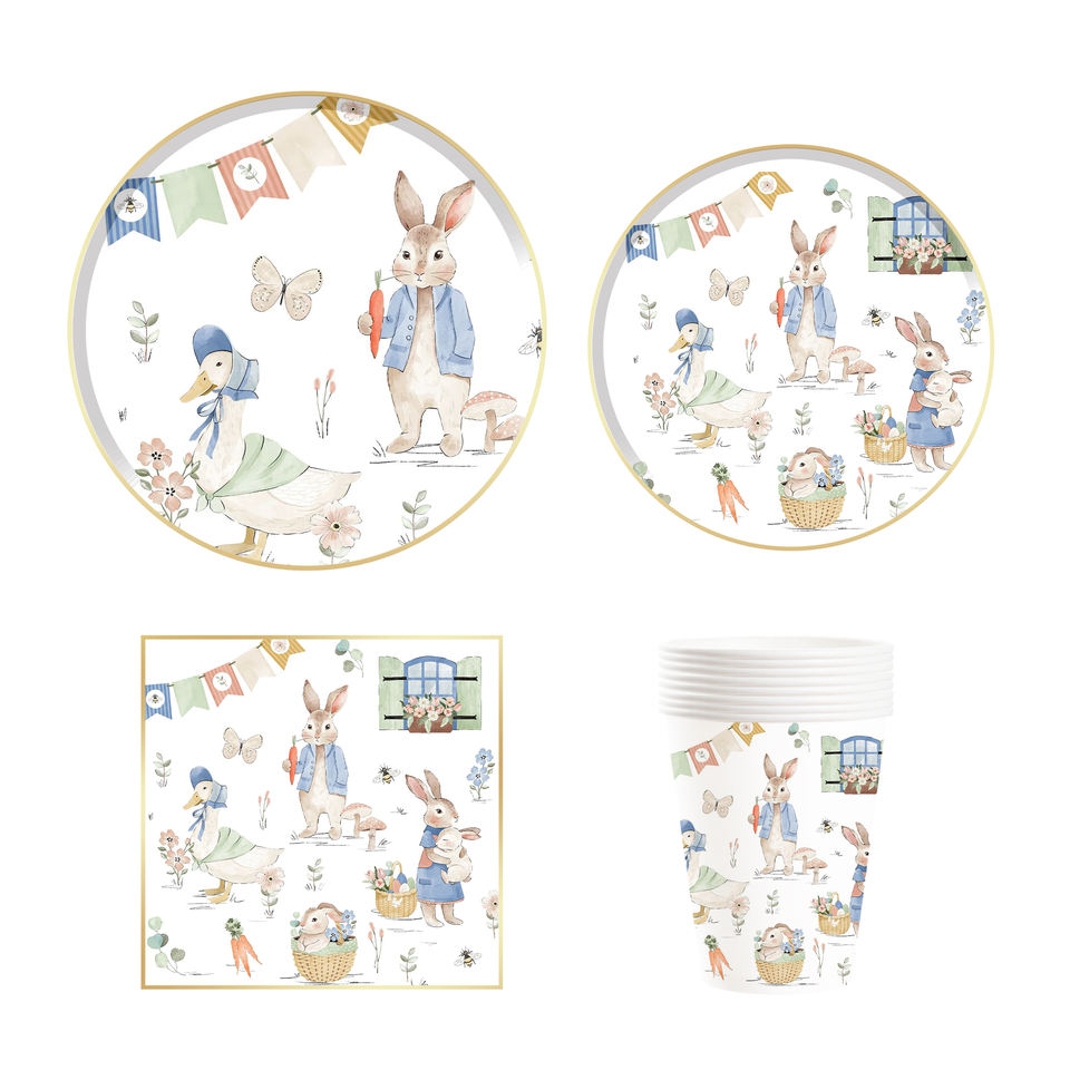 Juego de Vajilla DAMAI para Pascua, Platos de Papel Coloridos con Dibujos Animados, Platos Desechables para Fiestas, Vasos y Servilletas