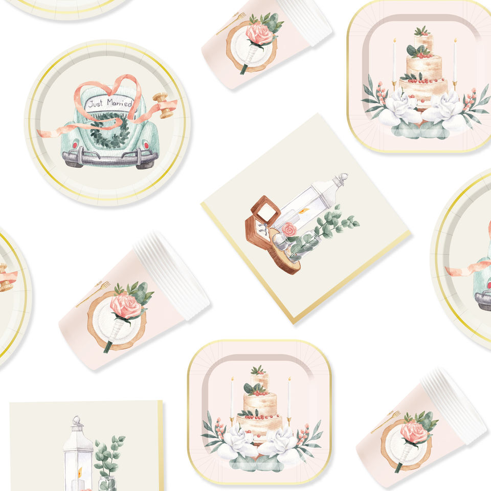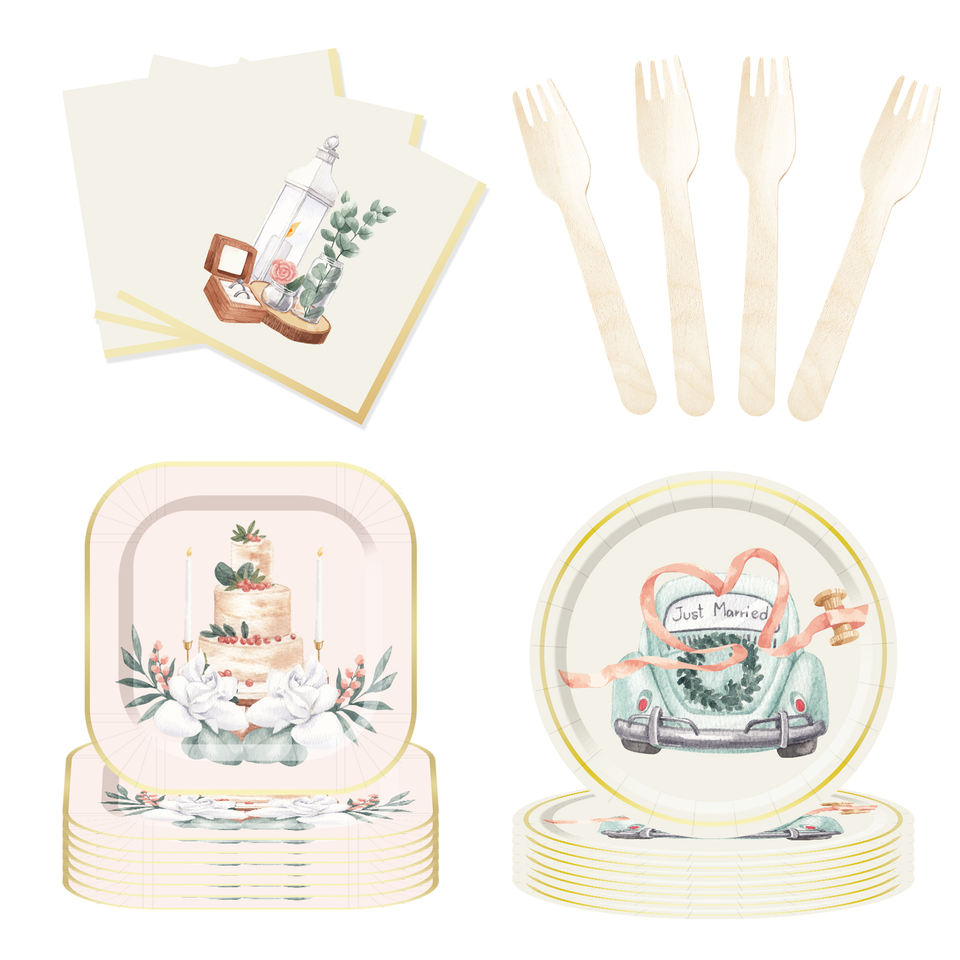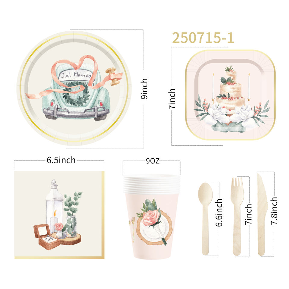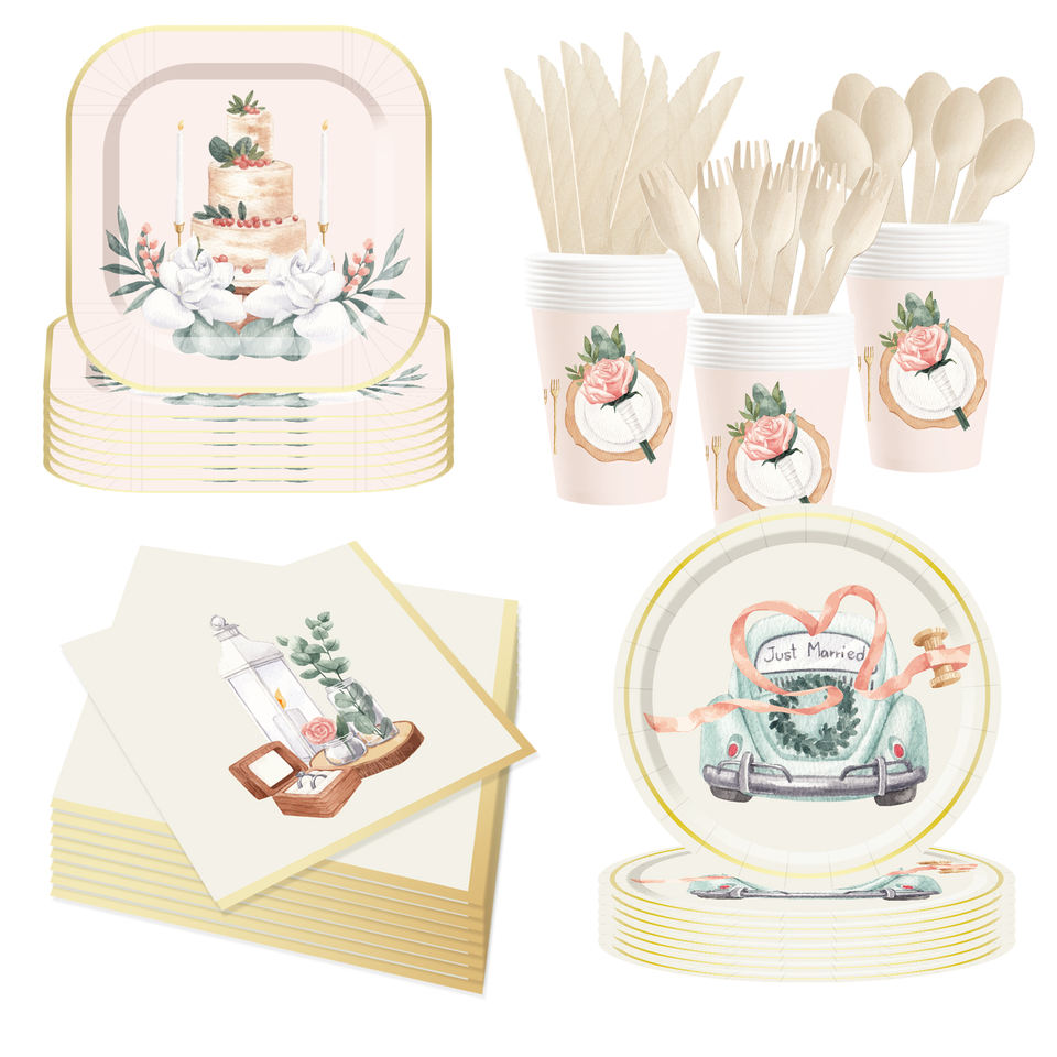 Juego de Vajilla DAMAI para Fiestas de Boda, Incluye Platos, Vasos y Servilletas de Papel para Decoración de Mesas de Boda