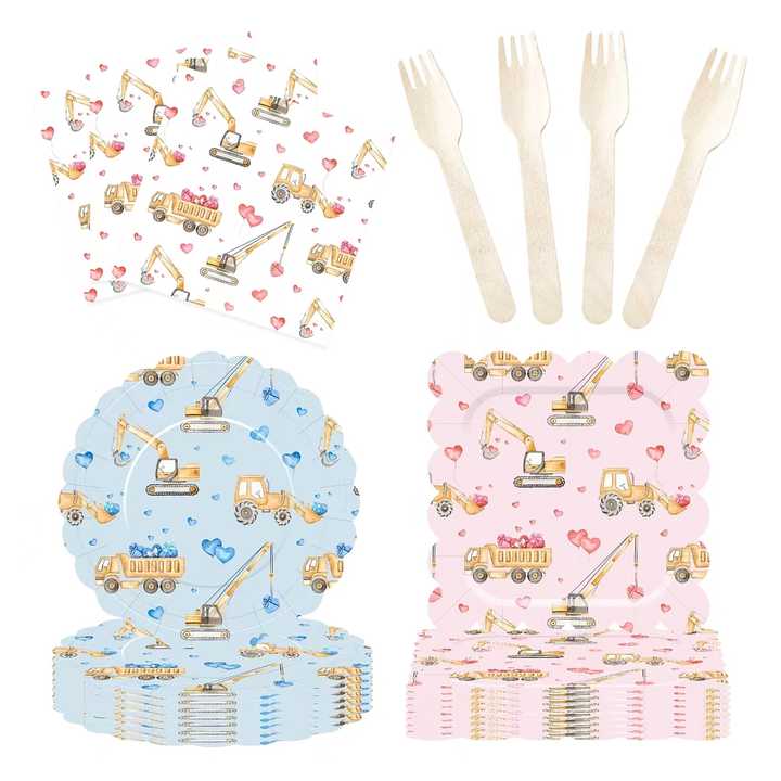 Decoraciones para Fiestas Infantiles DAMAI, Juego de Vajilla con Diseño de Camión Azul y Rosa, Platos, Vasos y Servilletas Desechables