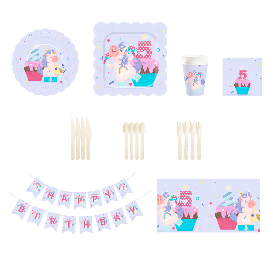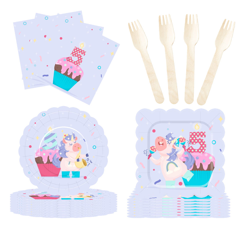 Kit de Fiesta Temática Infantil DAMAI, Platos y Vasos Desechables de Papel con Diseño de Unicornio para Postres y Cena, Juego de Vajilla