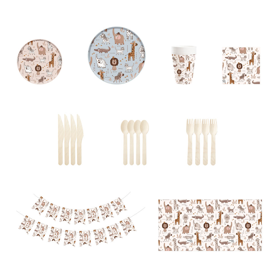 Juego de Vajilla Desechable con Temática Animal para Niños DAMAI, Jirafa, León, Elefante, Kit de Vajilla para Cumpleaños Infantiles