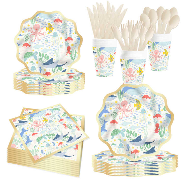 Juego de Platos Desechables de Papel para Fiestas Infantiles DAMAI, Decoración con Temática Oceánica