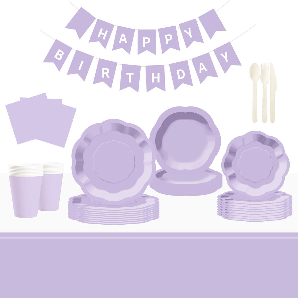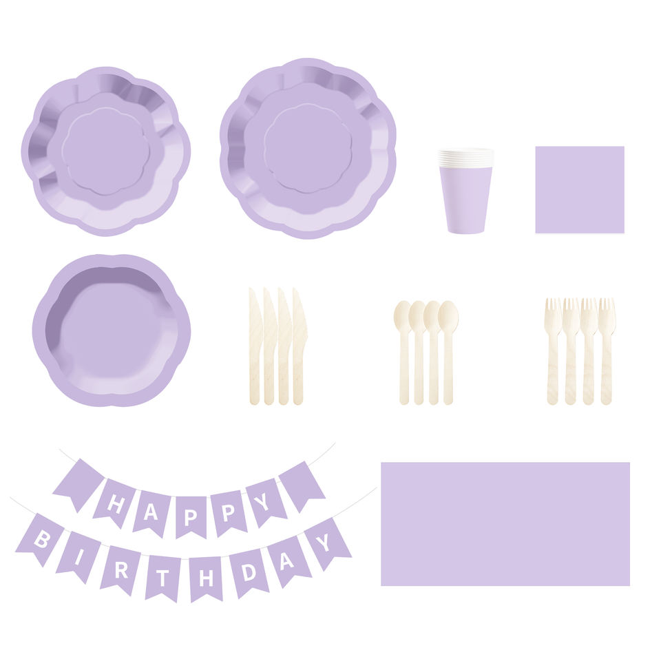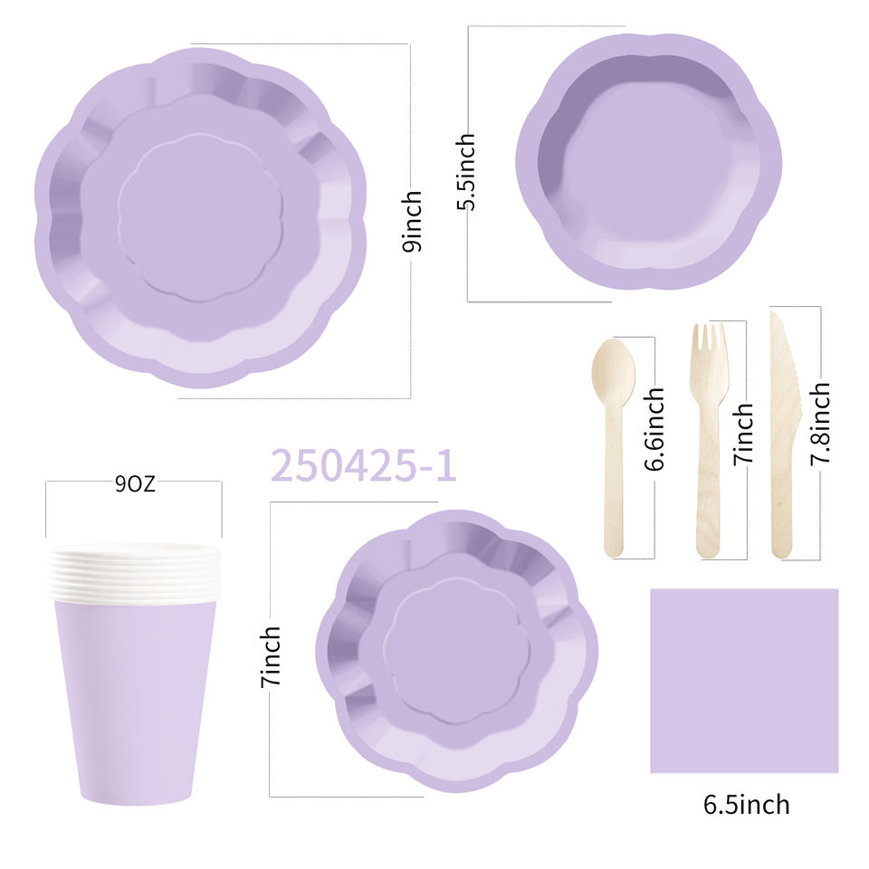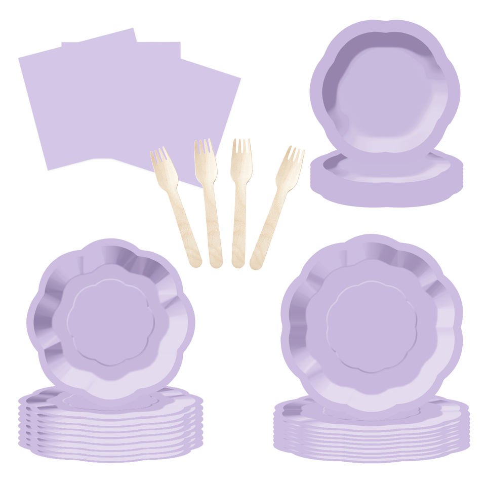Juego de Platos de Papel Color Morado Claro DAMAI para 8 Personas, Platos Desechables para Cena y Postre, para Bodas, Fiestas de Cumpleaños