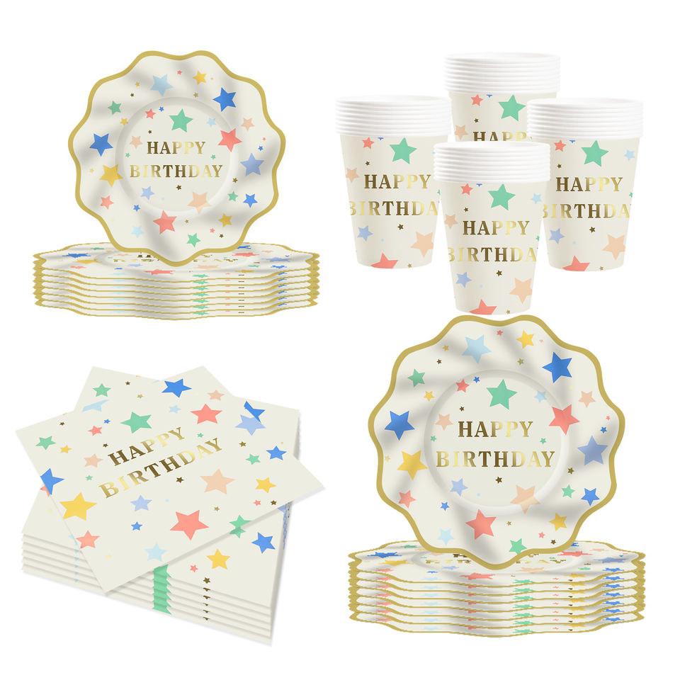 Juego de Vajilla Desechable para Fiesta de Cumpleaños con Tema de Estrellas de Encaje Amarillo Claro