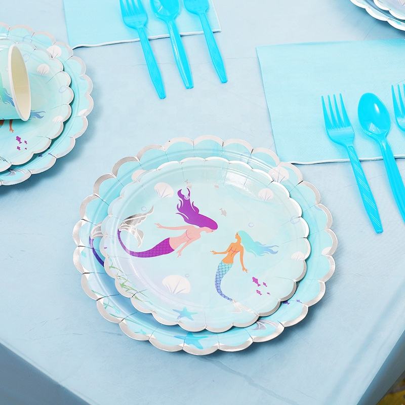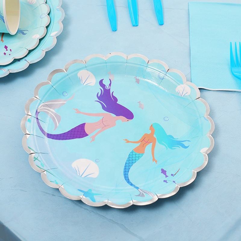 Nombre del producto:Plato de papel para fiesta con temática de sirena