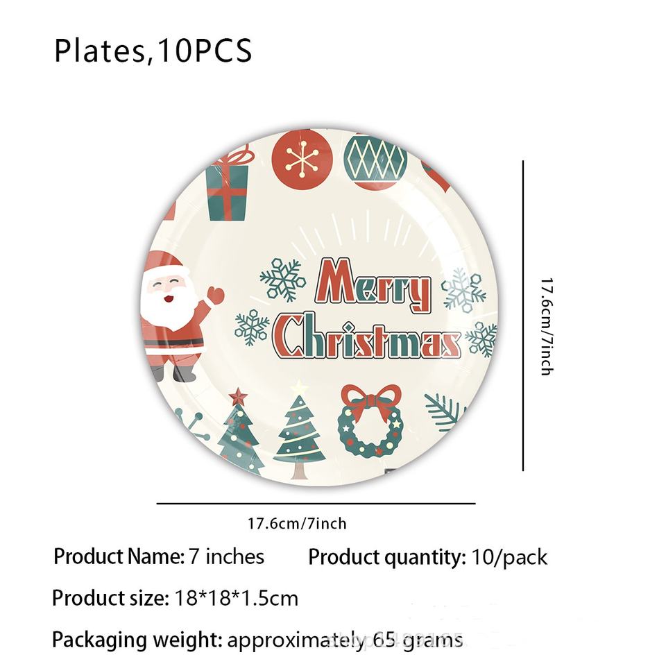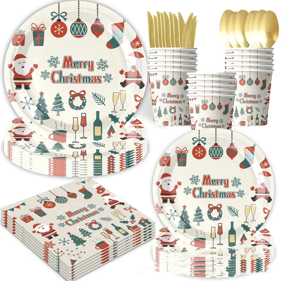 Juego de Vajilla Desechable DAMAI de Navidad con Diseño de Santa Claus, Incluye Plato de 7 Pulgadas, Platos de 9 Pulgadas, Servilletas, Vasos y Tenedores