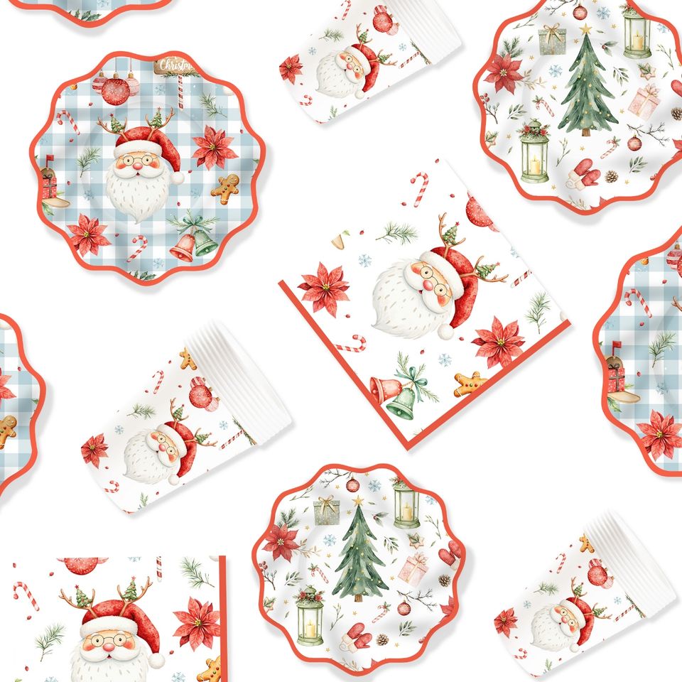 Juego de Vajilla con Temática Navideña DAMAI, Incluye Vasos de Papel de 7 y 9 Pulgadas y Servilletas para Fiestas Navideñas