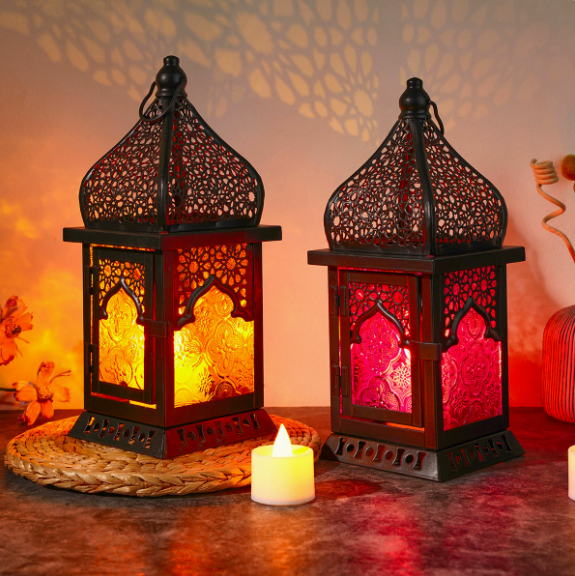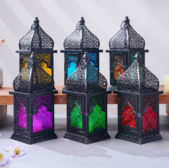 Farol de Hierro Estilo Marroquí DAMAI, con Diseño de Castillo Grabado, Multicolor Opcional, para Decoración del Hogar