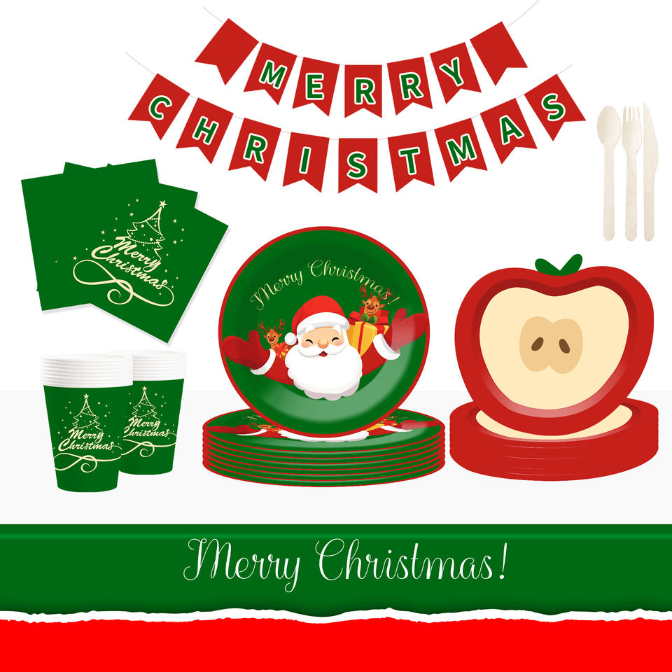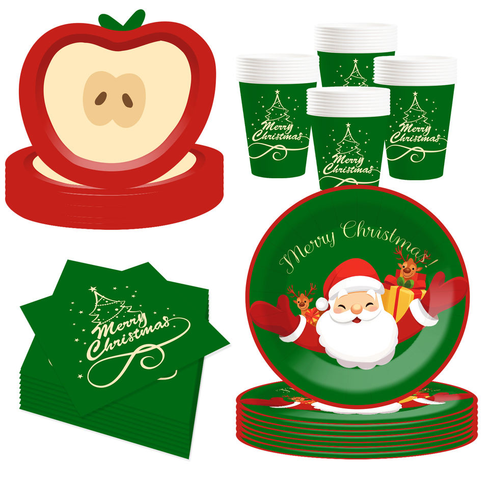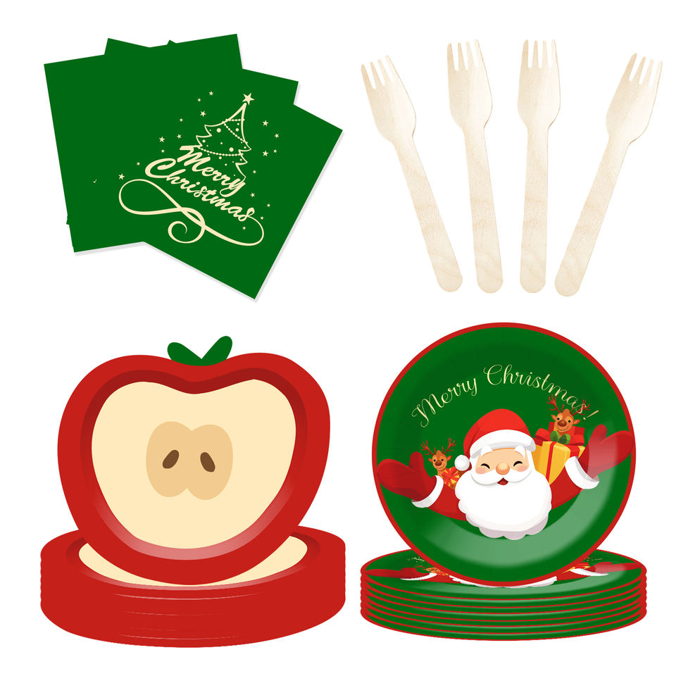 DAMAI Nuevo Juego de Vajilla Navideña con Elementos de Papá Noel, Platos de Papel y Molde de Manzana para Suministros Navideños, Sirve para 8 Personas