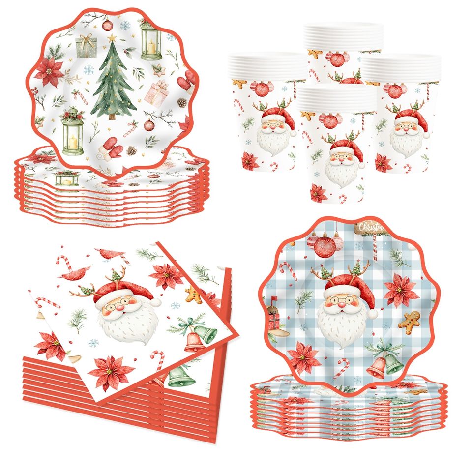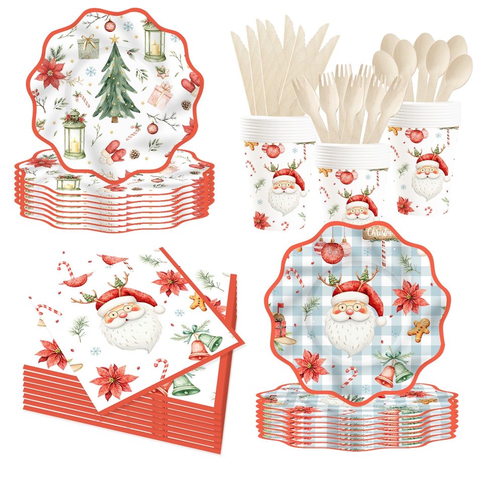 DAMAI New Christmas Party Tableware Set Include 7' and 9' Inch Wavy Paper Plate Paper Cup Napkin for Merry Christmas Party