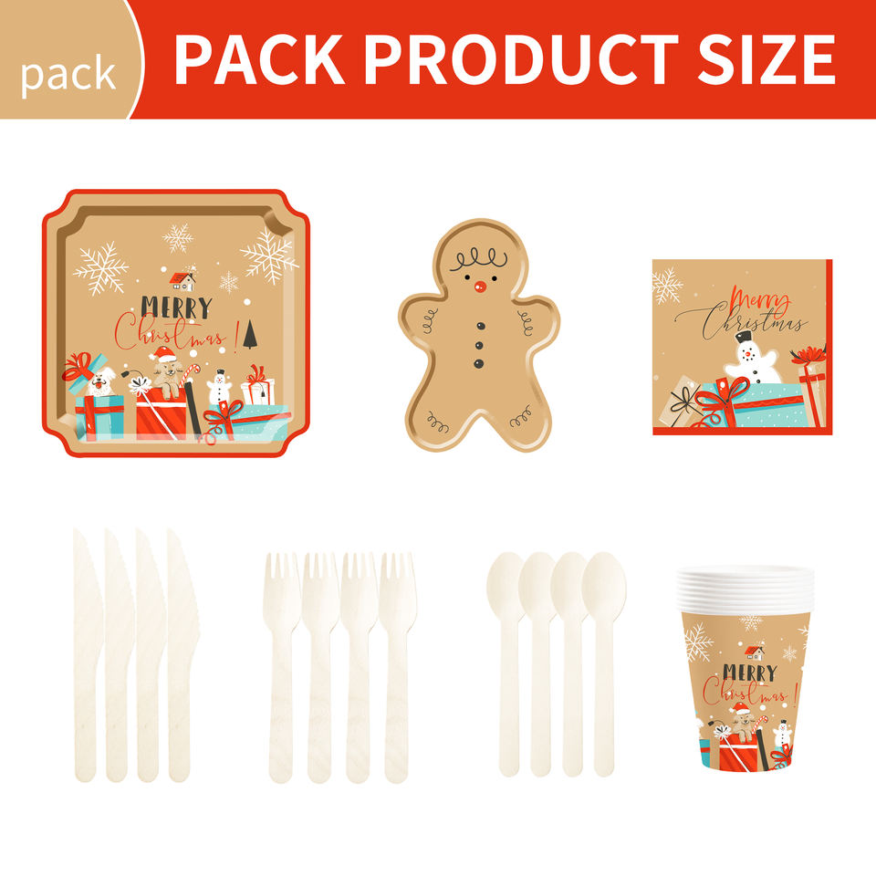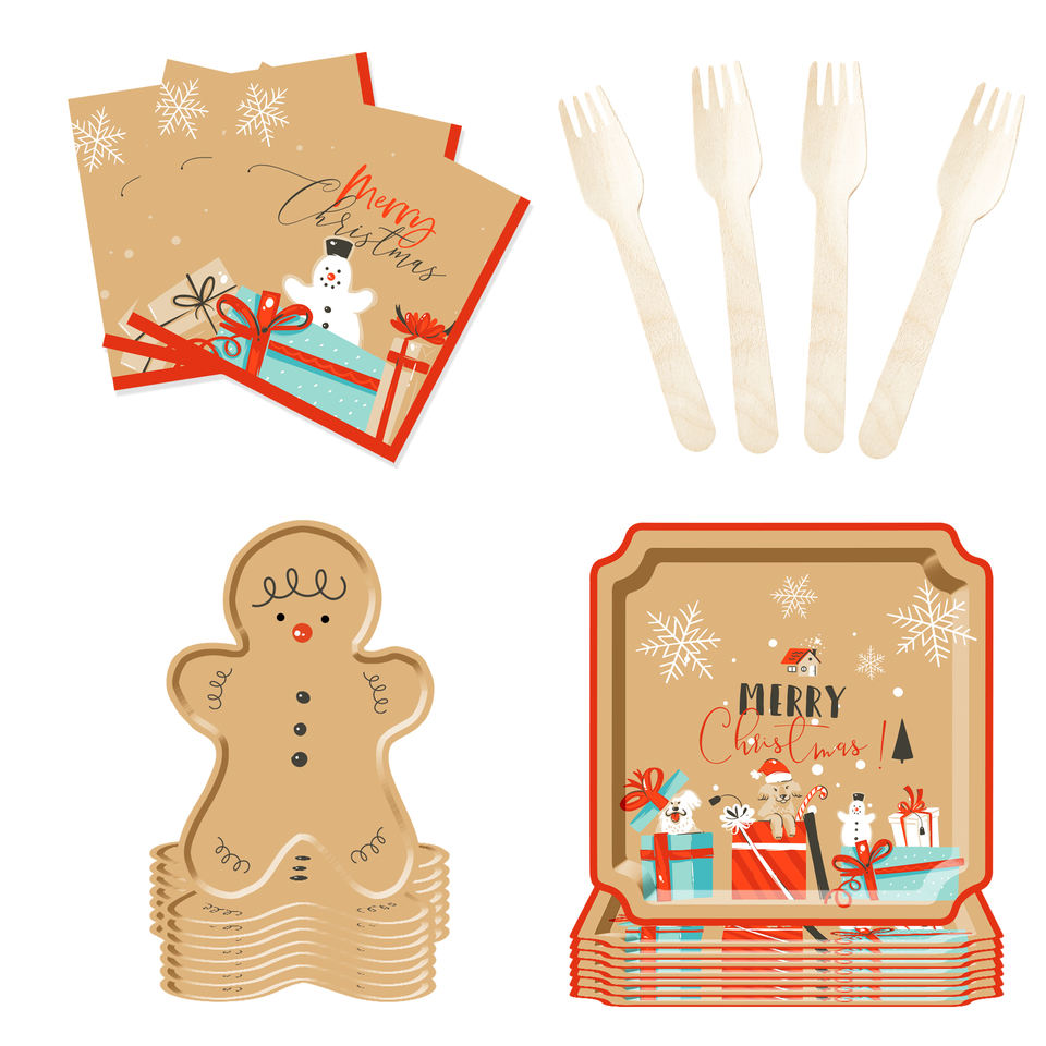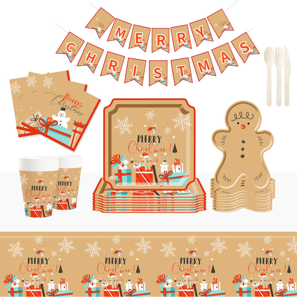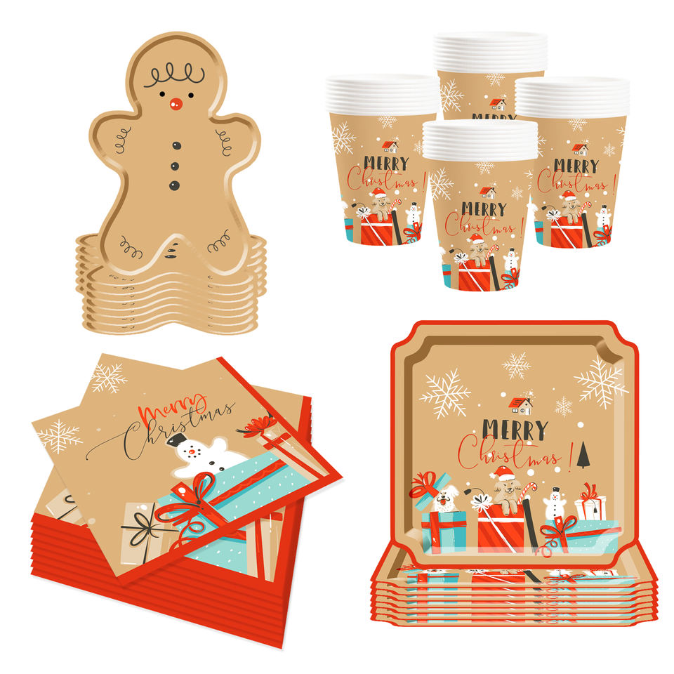 DAMAI Nuevo Juego de Vajilla Navideña, Juego de Platos, Vasos y Servilletas con Temática de Feliz Navidad para Decoración de Fiestas y Cenas de Picnic