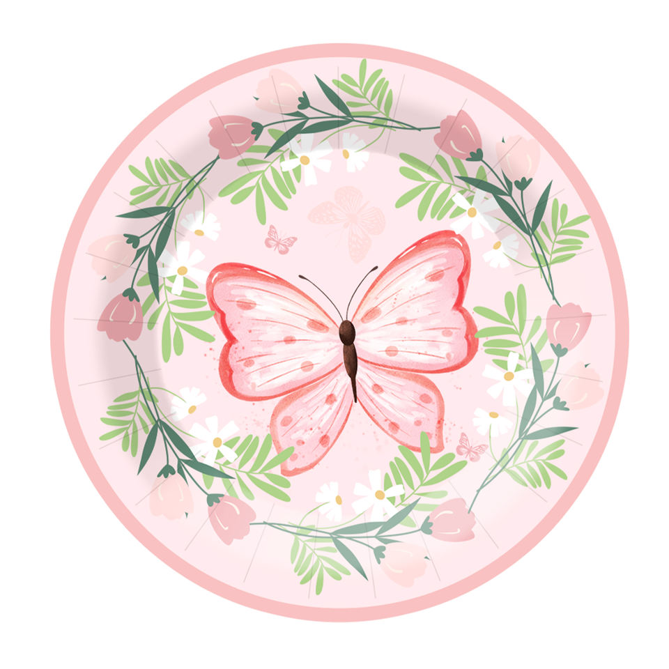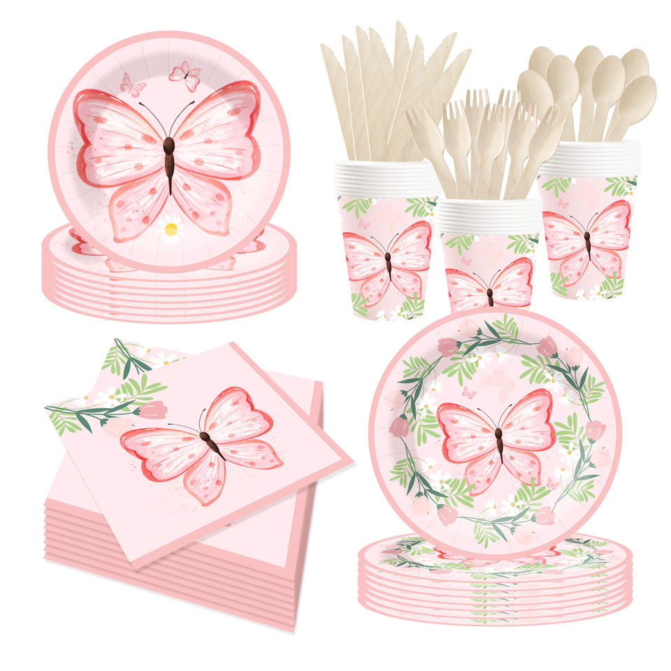 DAMAI Nuevo Kit de Vajilla de Papel con Diseño de Mariposas, Platos Desechables Rosas para Decoración de Fiestas de Cumpleaños de Niñas