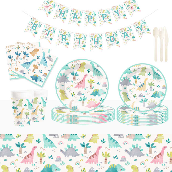 DAMAI Nuevo Juego de Vajilla Desechable con Diseño de Animales, Platos, Vasos y Servilletas de Papel para Postre y Cena con Dinosaurios