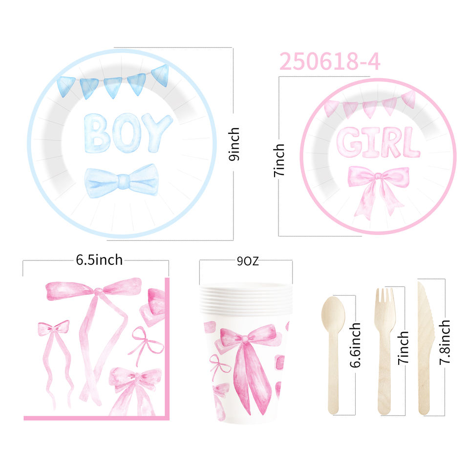 DAMAI Nuevo Juego de Vajilla Desechable Personalizado con Temática de Baby Shower, Platos de Papel para Postre y Cena, Vasos, Servilletas, con Lazo Rosa