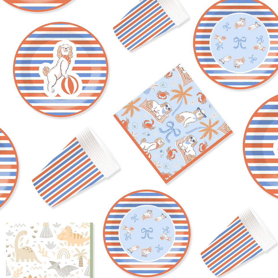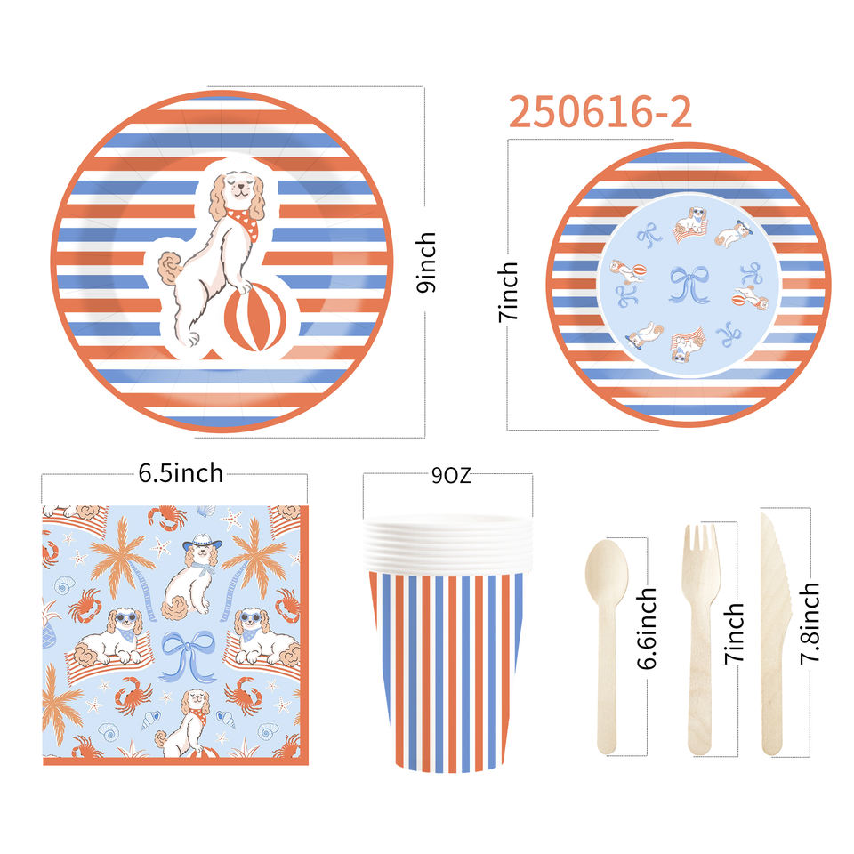 DAMAI Nuevo Juego de Vajilla Desechable Personalizado con Diseño de Animales para Fiestas, Platos, Vasos y Servilletas con Estampado de Perro