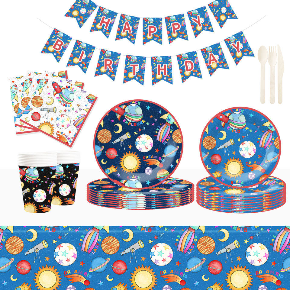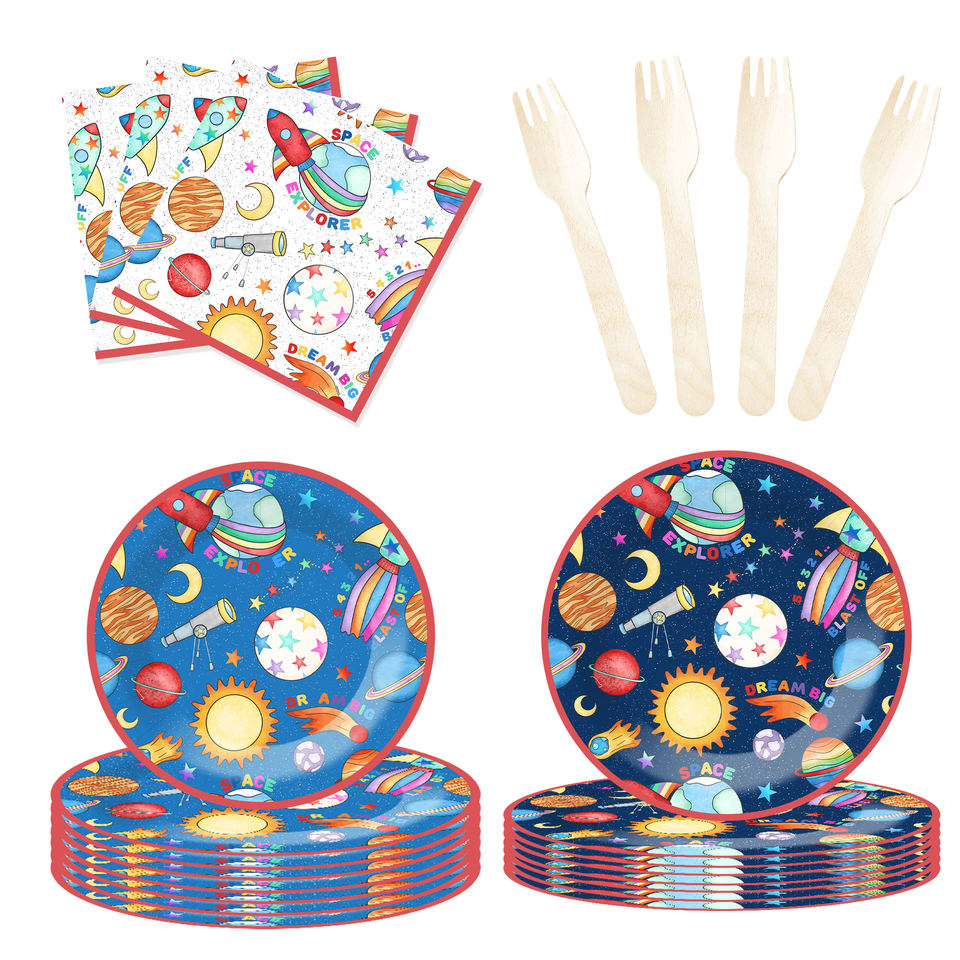 DAMAI Nuevo Juego de Vajilla Desechable Personalizado con Temática Espacial para Fiestas, Platos, Vasos y Servilletas de Papel para Niños