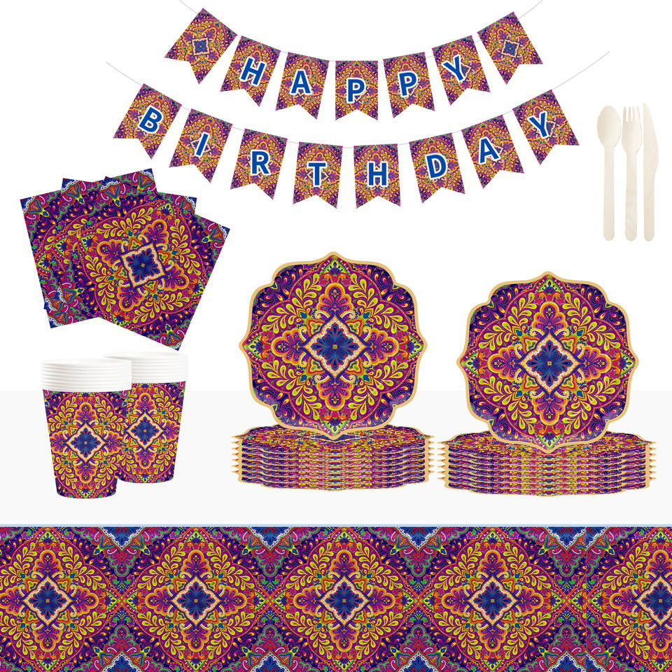 DAMAI Nuevo Juego de Vajilla Desechable Personalizado con Temática de Feliz Cumpleaños, Platos, Vasos y Servilletas de Papel Retro