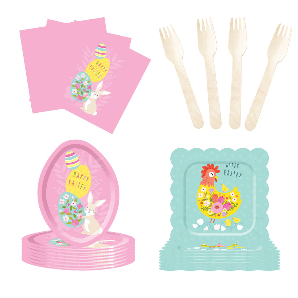 DAMAI Nuevo Diseño con Temática de Pascua, con Conejo y Pollo, Juego de Vajilla Desechable de Papel para Fiestas de Cumpleaños, Platos, Servilletas y Vasos para Pascua