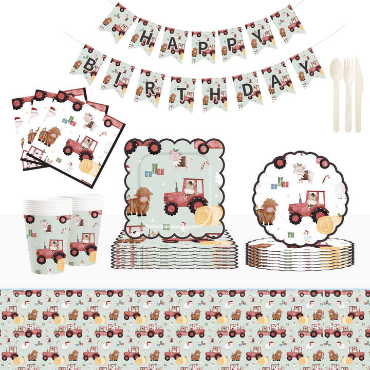 DAMAI - Juego de Vajilla Desechable de Papel con Diseño de Granja para Fiesta de Cumpleaños, Platos, Servilletas y Vasos para Niños