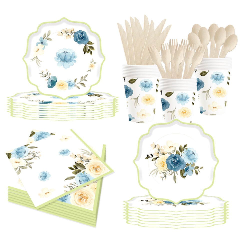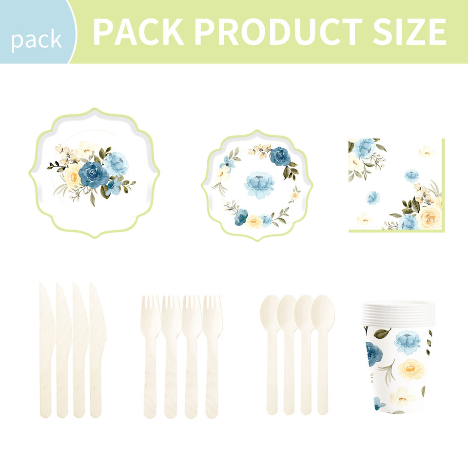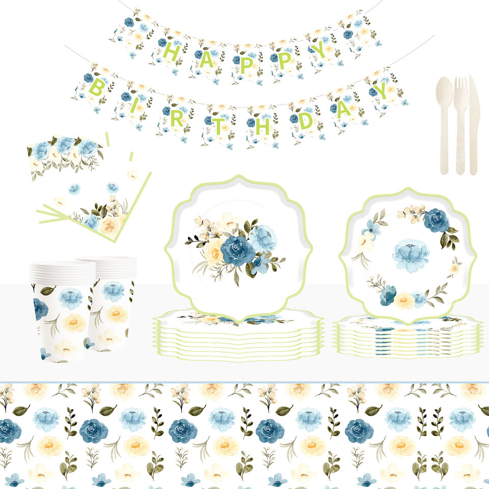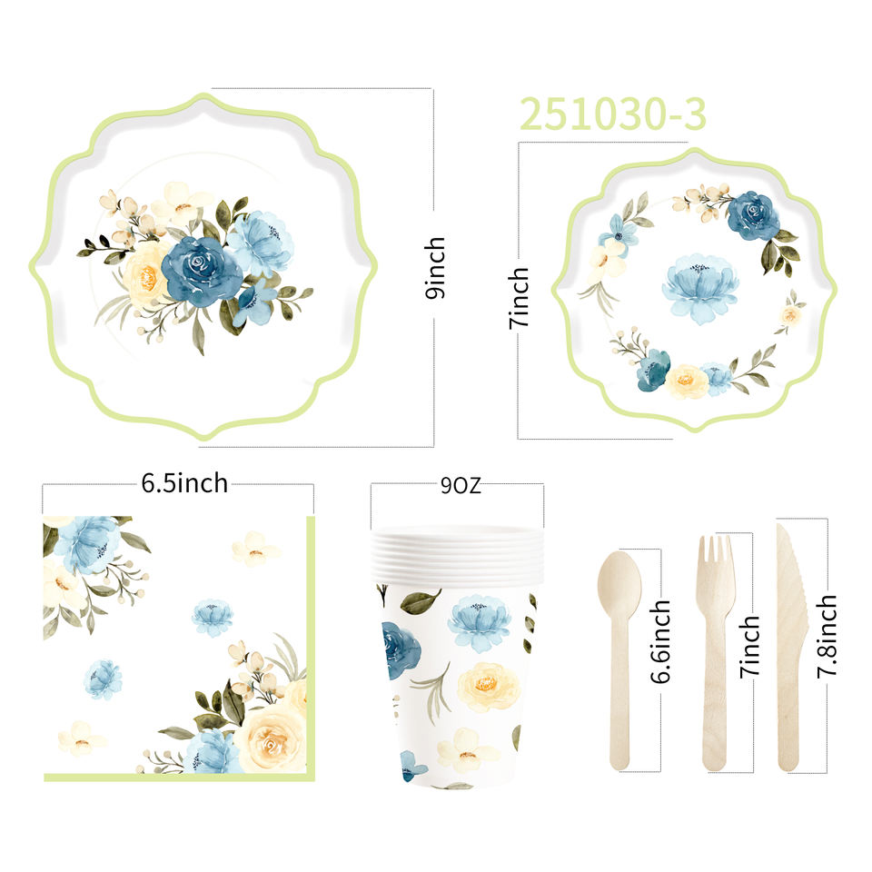 DAMAI - Juego de Vajilla Desechable de Papel con Diseño de Flores al Estilo Chino para Fiestas de Cumpleaños, Platos, Servilletas y Vasos para Fiestas de Boda