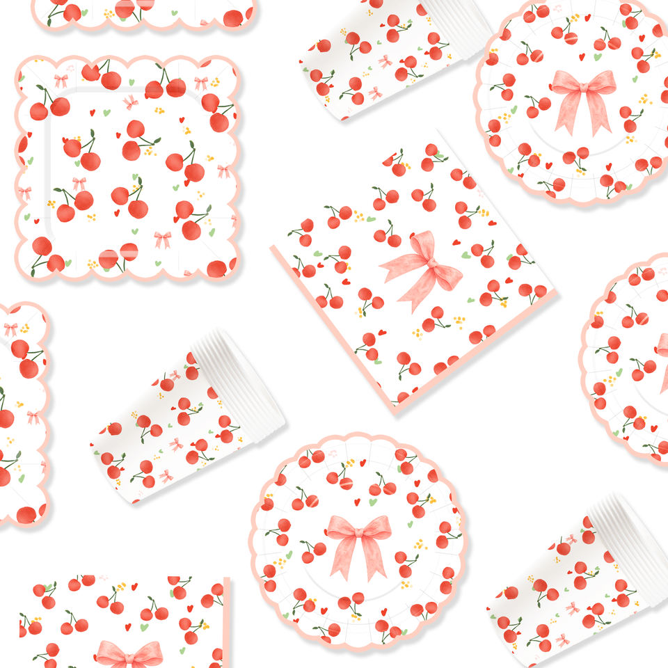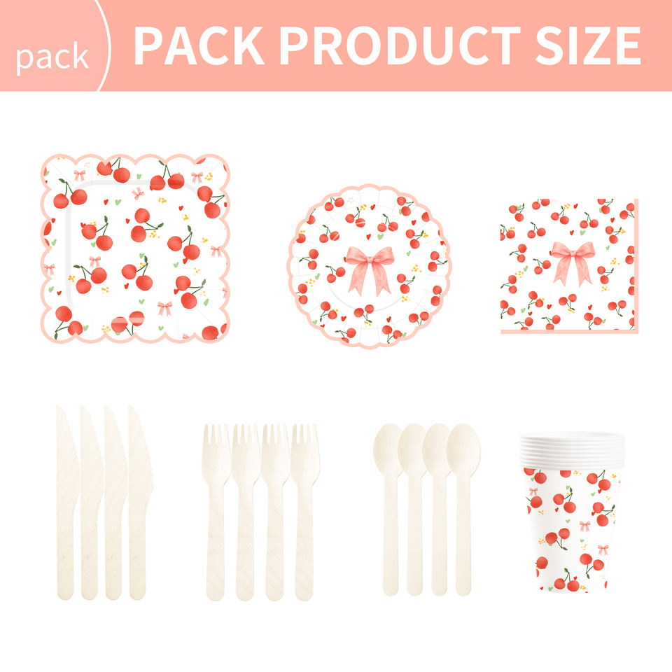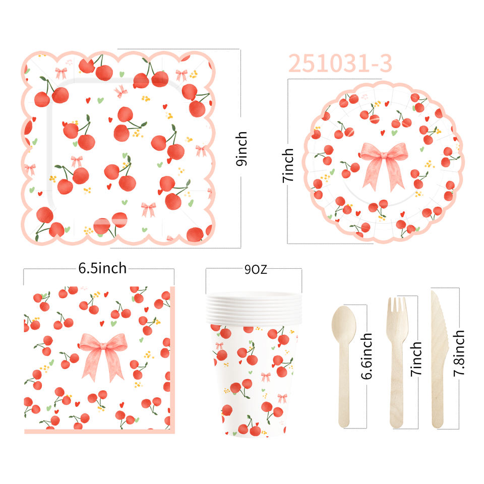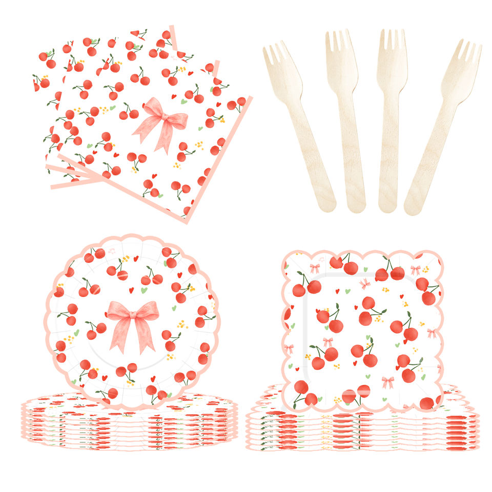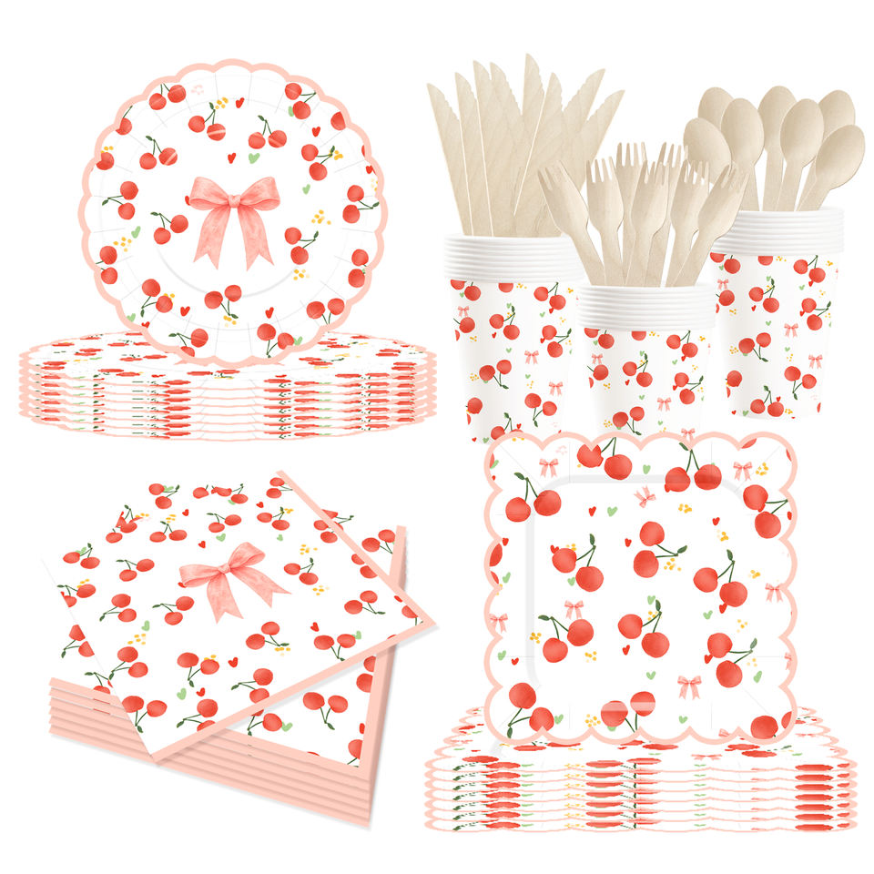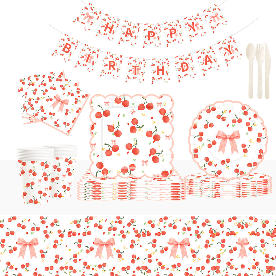 DAMAI Nuevo Diseño con Temática de Frutas, Juego de Vajilla Desechable de Papel para Fiesta de Cumpleaños Rosa, con Platos, Servilletas y Vasos, con Nudo y Cereza