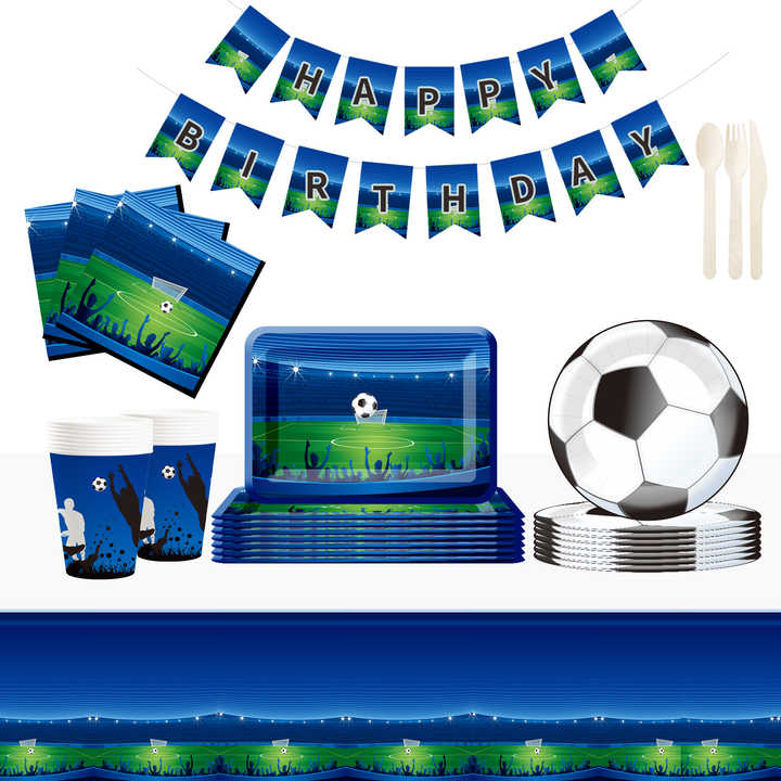 DAMAI - Juego de Vajilla Desechable de Papel con Diseño Deportivo para Fiesta de Cumpleaños, Platos, Servilletas y Vasos con Temática de Fútbol