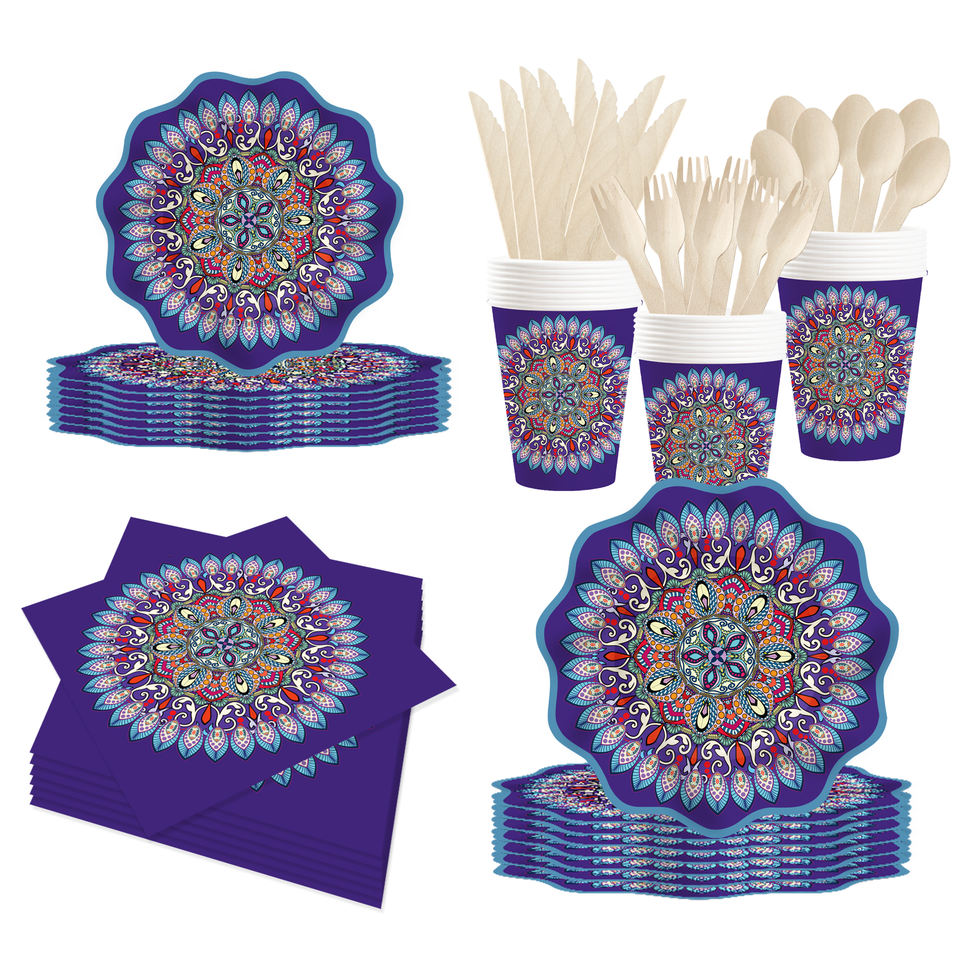 Juego de Vajilla DAMAI de Diseño Nuevo, Estilo Étnico, Platos, Servilletas y Vasos Desechables de Papel, Kits para Fiestas en Azul Oscuro